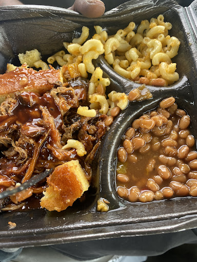 Read moreIf I dont like the food on the first go, that’s never a deal breaker for me, ESPECIALLY if the service and vibe are cool… I will not be back, and the service and atmosphere was good…. I hope that speaks to the quality of this food, or lack thereof. I was starving, the time was 1pm on a Friday. (Peakhours) Googled for near me, this came up… Mouth instantly watering. I get there and see 3 black guys who looked like local hood guys from nearby. Instantly I KNOW the food about to be bomb. a. I also see 2 young adults (maybe Philapino or Nicaraguan) ONLY as the operators. Red flag but still optimistic because bbq is pre prepped so maybe they just heat and serve. 3.I order a BBQ pulled pork baked potato for $7 and a side of collards for $3. Hubby ordered a pulled pork platter with Mac and baked beans. See pic of potato. It was a bland potato no salt or pepper, with CHEESE FROM A PUMP and literally an ice cream scoop full of meat. They put cream on the side and NO COLOR, chives green onion NOTHING. F for presentation for sure. a. It tasted like I described. NO FLAVOR OR SAUCE, JUST NOTHING b. The greens were sautéed or fried or boiled idk. Alls I know is none of those are the proper cooking methods. Seasoning, FAHGETABOUTIT. I know we was nowhere in that process. 5.The pork platter, pulled pork and sauce were both ok. a. Mac and cheese was a nightmare. All nac no cheese no salt just air. b. Baked beans extremely watery.. Long story short them kids made that food or something…