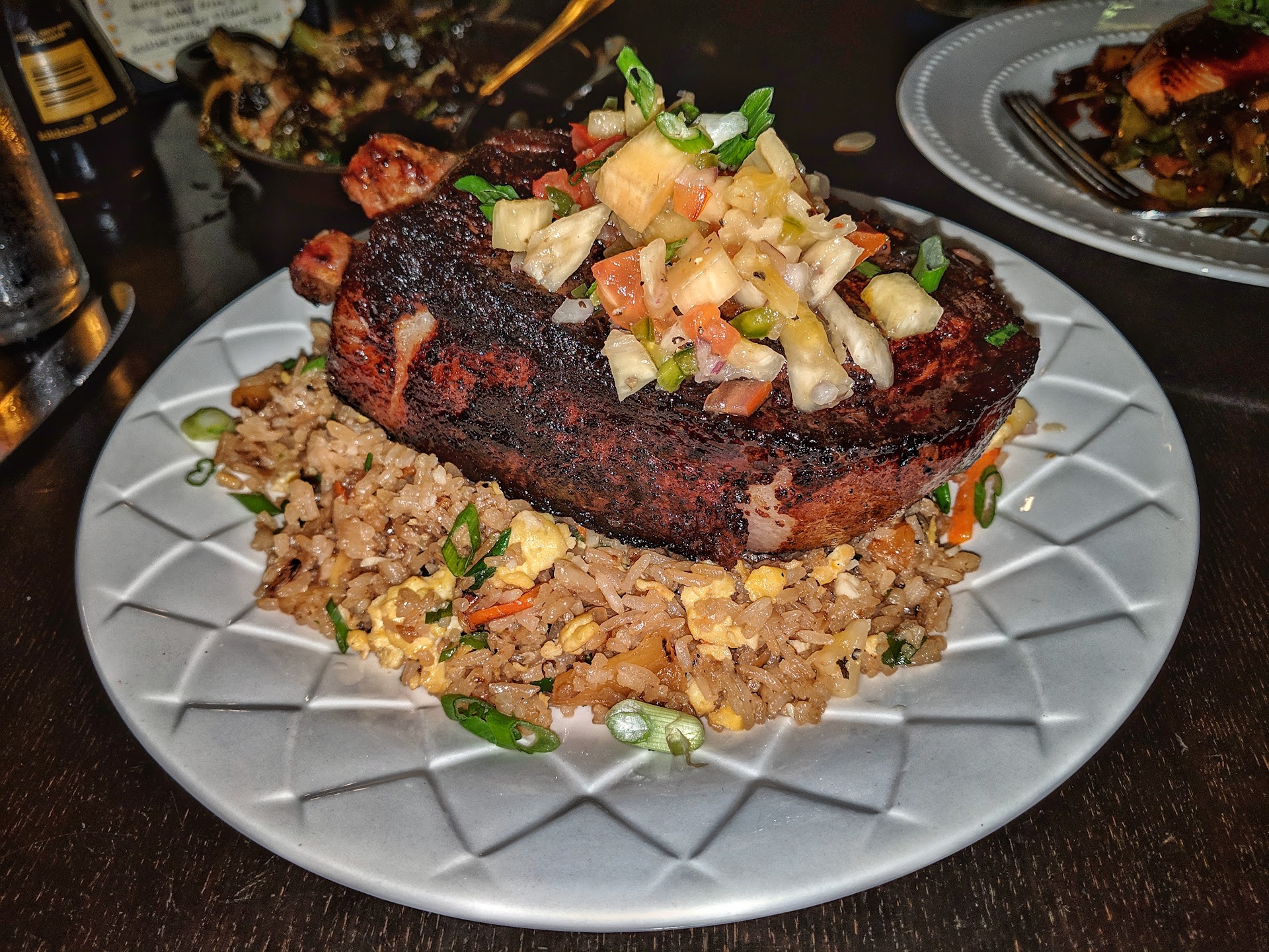 The Duroc pork chop is substantial, but the cous cous too light. The ribeye doesn’t say USDA Prime and to be called a steakshouse you need that. I love their liberal use of eggs poached, sunny side on breads, flat breads and entrees. I asked to have a modified hollandaise sauce used instead of salad dressing, I have them some liberty on that. I like their 320 sauce and A1 variation on other items too. Always go crème brulee when it’s available.