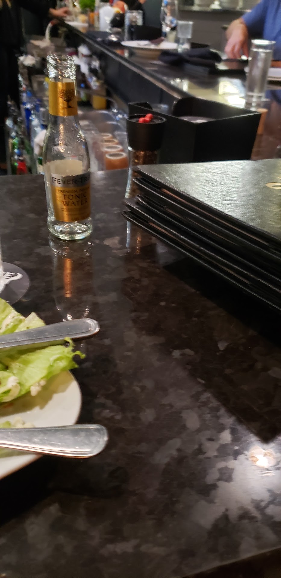 About a week ago, my fiancé and I took my dad here for dinner. He was visiting from out of town, and appreciates a good "Mule." We had been with him before and even tried to get him a 320 Copper Mug, but there were none available. Not even for ready money. I have my own 320 copper cup, but it is in my collection of drinking vessels in another state. We ended up buying out own 100% copper mugs, which we brought with us on this occasion.