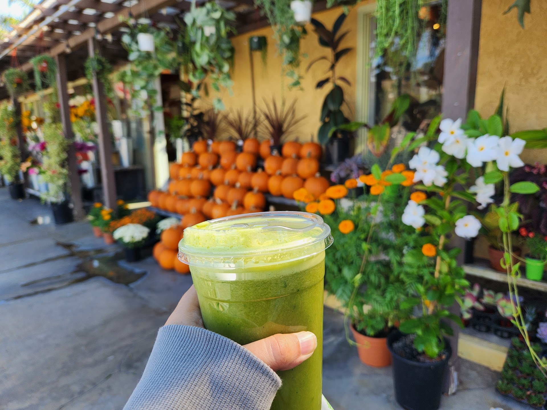 Read moreI have been here on two separate occasions and the workers are both really nice! The first time service was a little slow but that wasn't a big deal since there is a lot to look at in this shop since it is attached to a garden shop!🌷💐 The prices aren't too bad either. The downside (and I can only speak for the juice as it was all I had both times) is the consistency of the juice. Both times I got the detox street juice and it was very watery compared to the other juices I've had in the past. They were also not 100% juiced, there were little chunks of fruit still at the bottom... which is fine but my main issue is the second time I ordered the detox drink it tasted like a ginger shot, I do enjoy ginger shots, but I couldn't finish the drink because it was too strong. Overall this place is cute, lots of places for very cute pictures, but the juices need a...