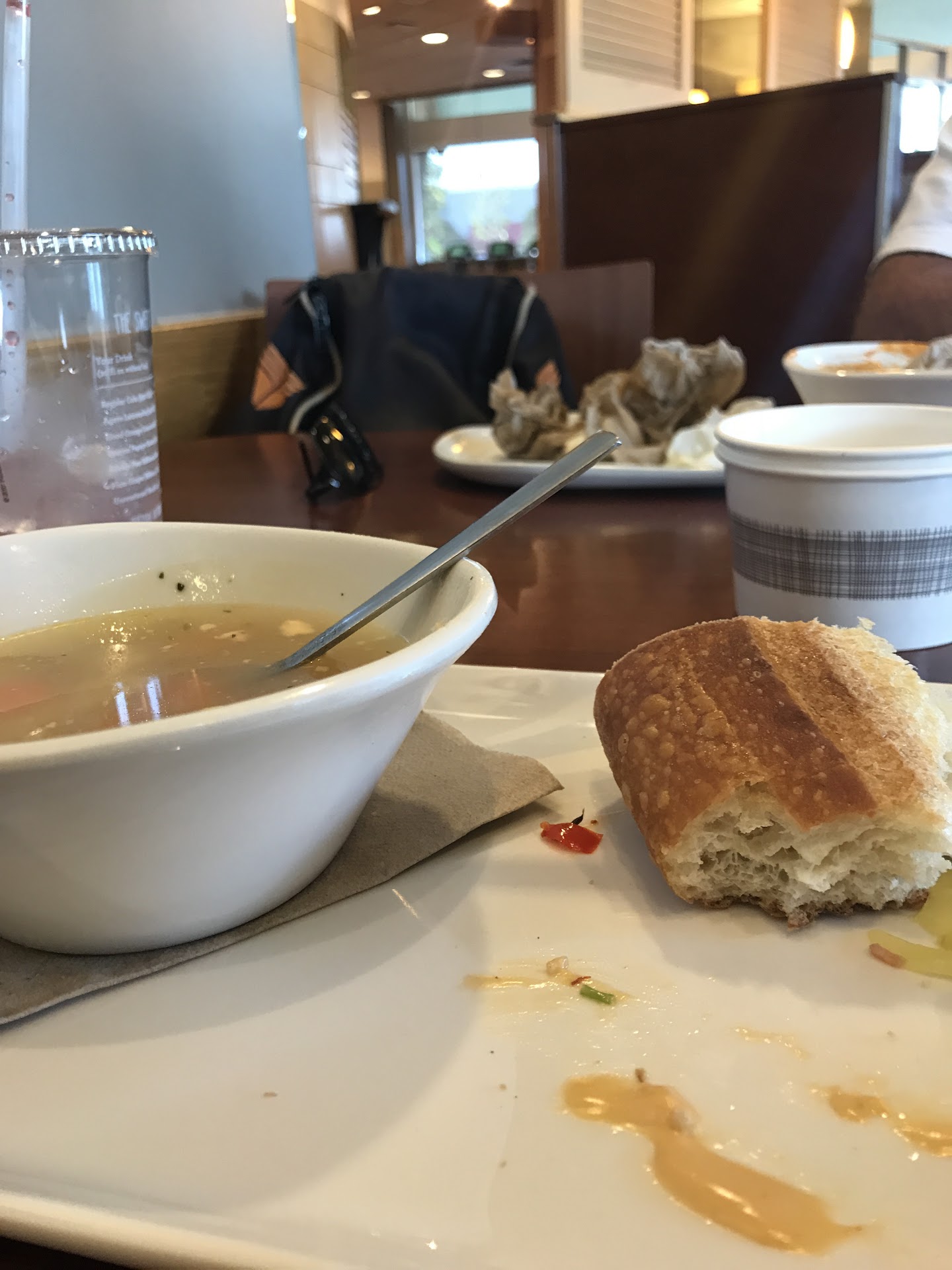 Read moreWe've never been to a Panera Bread before, so nothing to compare this location to, but it was clean, had a one way system (that people were not using) and hand sanitizing stations throughout. The lady at the ordering counter was clearly overwhelmed but was doing her best - wish her mask fit her correctly, but she doesn't touch food, so I guess it's okay?? Would have loved if there was better communication about where you stand to wait for your order - it's tight spaces in the area where they put the bags for order pickup so waiting was a little uncomfortable. Did appreciate they checked the bags to make sure the kitchen got all the right items - having been to lots of places for takeout and coming home to missing items seems to be a thing these days with Covid.
