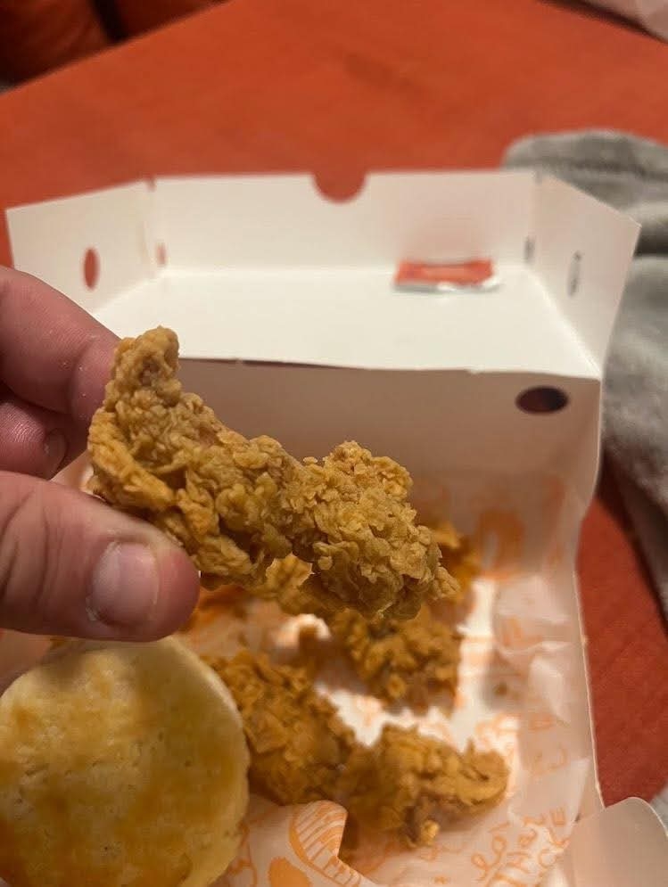 Read moreWe went here to try it out since it’s a new location in Sealy. Well dang, we won’t be going there again. First off, the app wasn’t working so we just ordered through the drive through. Well everything is a couple dollars more through the drive through than ordering on the app. We spent more than $25 on 2 combo meals, to then feel disgusting after trying to finish the food. The biscuit was really good, the fries were pretty good, but the chicken was not great. I bit into a chicken breast and it was 50% fried batter. Not much meat. My wife’s chicken tenders were inedible, we threw most of it in the garbage. She bit into one and it was completely dry, not to mention very thin and small. So were the other 2. Can’t believe we spent this much money to get sub par food and be reminded of how gross you feel after eating fast food. Fast food is just getting more expensive these days and getting worse and...