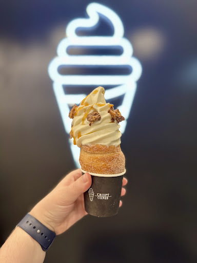 This was a mess. It's soft serve ice cream in a lukewarm, soft cone. The store location is so small they only have 4 or 5 tables, and this isn't a food you can take to go. And it's a bad location for groups since the tables are all 4 tops. The tables are all full when we came in but when a group of 10-12 came in behind us it got really crowded and chaotic. Based on how long it took each cone to be made, the first person probably finished their ice cream long before the last person got theirs. Typical ice cream cones have more space inside the cone for ice cream. But these cones have barely any room inside; 6 swirls and a dollop is too big for structural stability. Naturally, 2 minutes after I received my ice cream, it plopped into my lap. I was holding two cones while we drove to a park a couple minutes away and was covered in drips by the time we arrived. I particularly hate messy foods, but I think most people would be unhappy with this arrangement. These would have been better served in a large bowl instead. You know structural stability of your ice cream is bad when they send everyone out the door with 2 cups supporting their ice cream cones. I think these cones would be really yummy when warm. But the one I got was clearly room temp before they filled it with ice cream; and by the time I ate the ice cream the taste and texture of the then cold cone was wrong. I wish I could just order a cone by itself and eat it hot. The company says the cones are made to order, but they're clearly made in advance. They had a stack of 20-30 in a basket on the counter that they were serving out of, premade ahead of time. The serving was way too big for a single person. I'm glad we ordered to share. Even so, I felt sick from eating so much sugar so quickly as the ice cream melted. I really wanted to like this place, but I didn't. I might try again and do a fruit cone, just skip all the ice cream completely. But it's going to be a little while until I recover from this first ordeal. Minus one star for each: not enough seating, cone not fresh made to order as advertised, melty soft-serve mess.