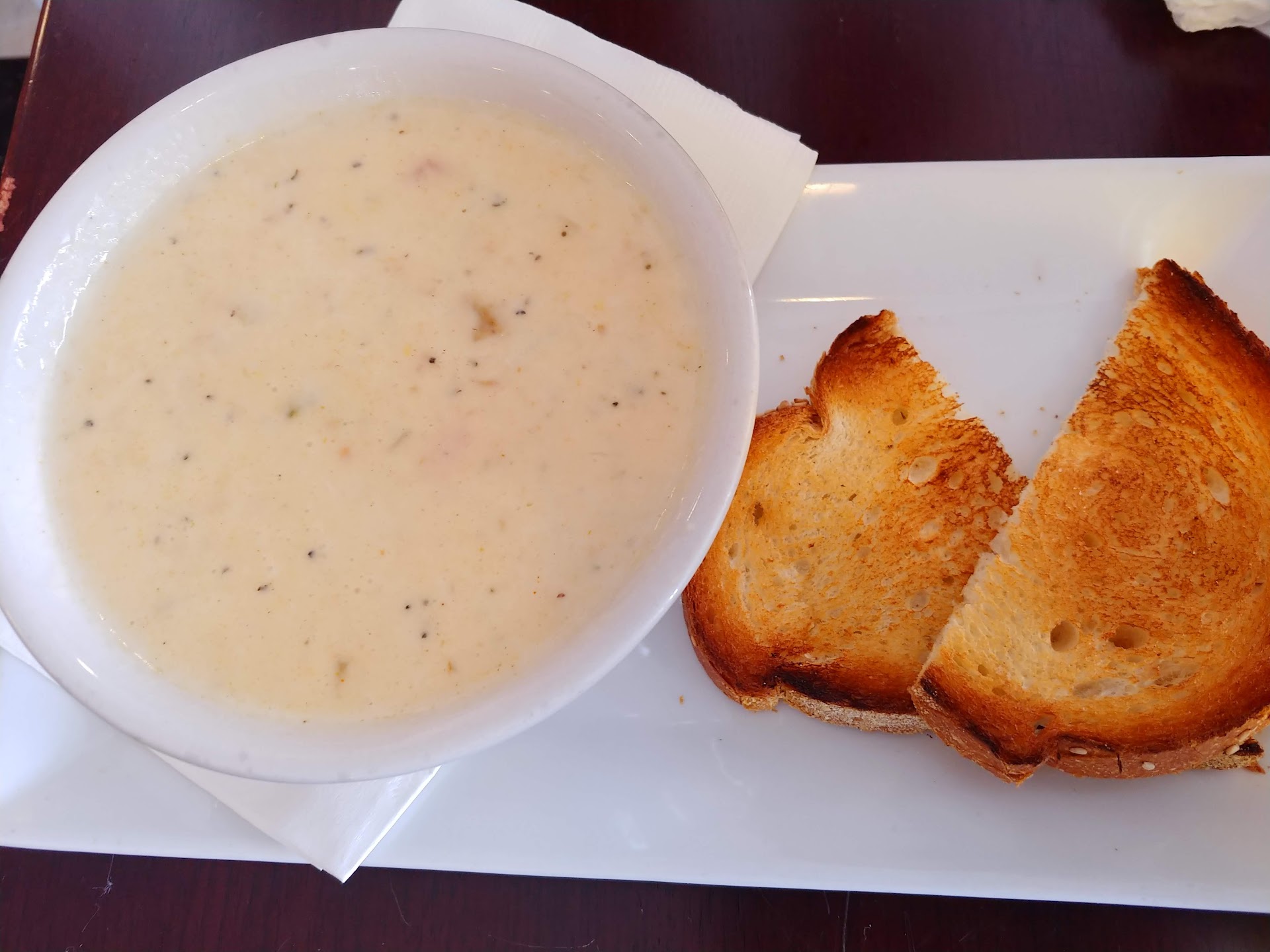 Read moreCame here on a Saturday around noon with my husband. We bought beer from the liquor store across the street because we read that it's BYOB. Our server told us that the kitchen would need 10 minutes to be set up for lunch service. This was fine with us since it takes us that long to decide on what to order haha. We noticed people around us were eating toast and eggs so we assumed that the restaurant could only prepare breakfast until they could set up for lunch. We looked on Yelp and decided on lobster mac and cheese and the seafood paella. My huband also ordered the New England clam chowder. Everything was super scrumptious. My only complaint was that the clam chowder didn't have that much clam in it. It was like digging for the little morsels of gold. The seafood paella had lots of seafood and just a little bit of rice, which I liked. There was a whole half lobster which was so sweet. The lobster mac and cheese we thought would be an appetizer but it was huge with lots of lobster. It was so good with tabasco sauce. We barely finished. The service was great. If we ever visit seaside heights again we'll...