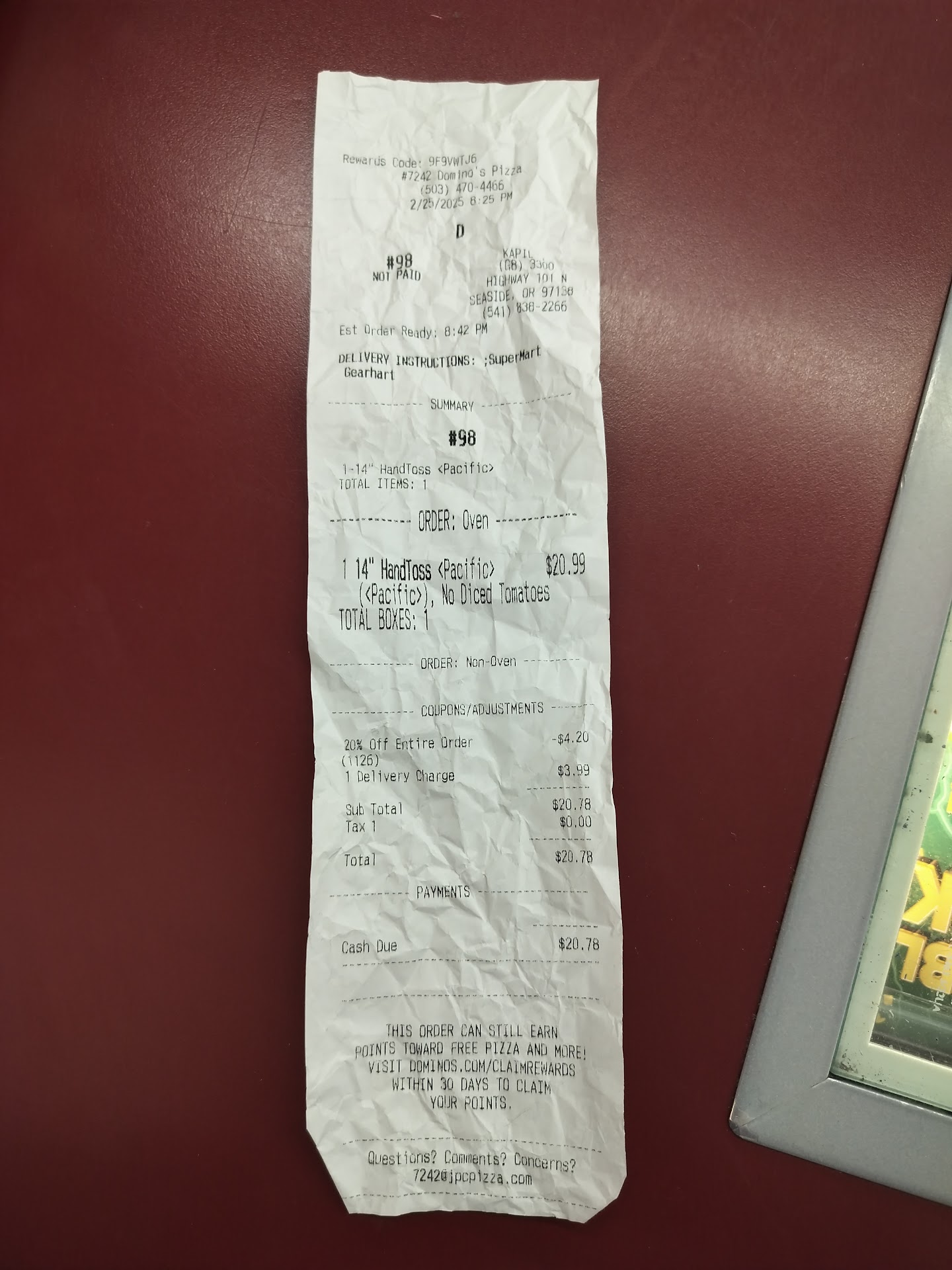 It's alright... i haven't ordered from your company for over a year now. I was ready to give them another chance. I guess I'll stick to locally owned pizza places from here on out. And I surely won't be recommending Dominos to guests (local front desk...