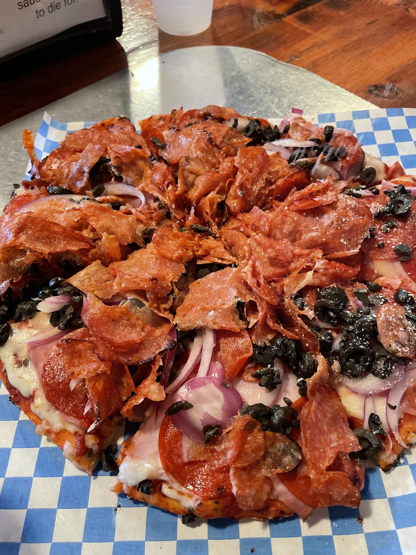 Read moreGreat pizza place in Seaside. My family and I each got a small personal size pizza and got a cheesy garlic bread (pictured) to share. The garlic bread was fantastic. A small loaf of bread cut in half, smothered in garlic butter and topped with a generous amount of cheese, along with a side of pizza sauce. The sauce was a little sweeter than I would have thought, but complimented the bread quite nicely. The pizzas were fantastic. The crust with nice and crispy from the wood fire oven they've used since 1979! The pizzas had a great taste, and each came with a very generous amount of toppings. Highly recommend the Haystack Special (pictured). On the way out we also noticed that they do delivery after 4 - we only saw that as we were leaving, so didn't see details, but that could be a great option for all the hotels around the area.