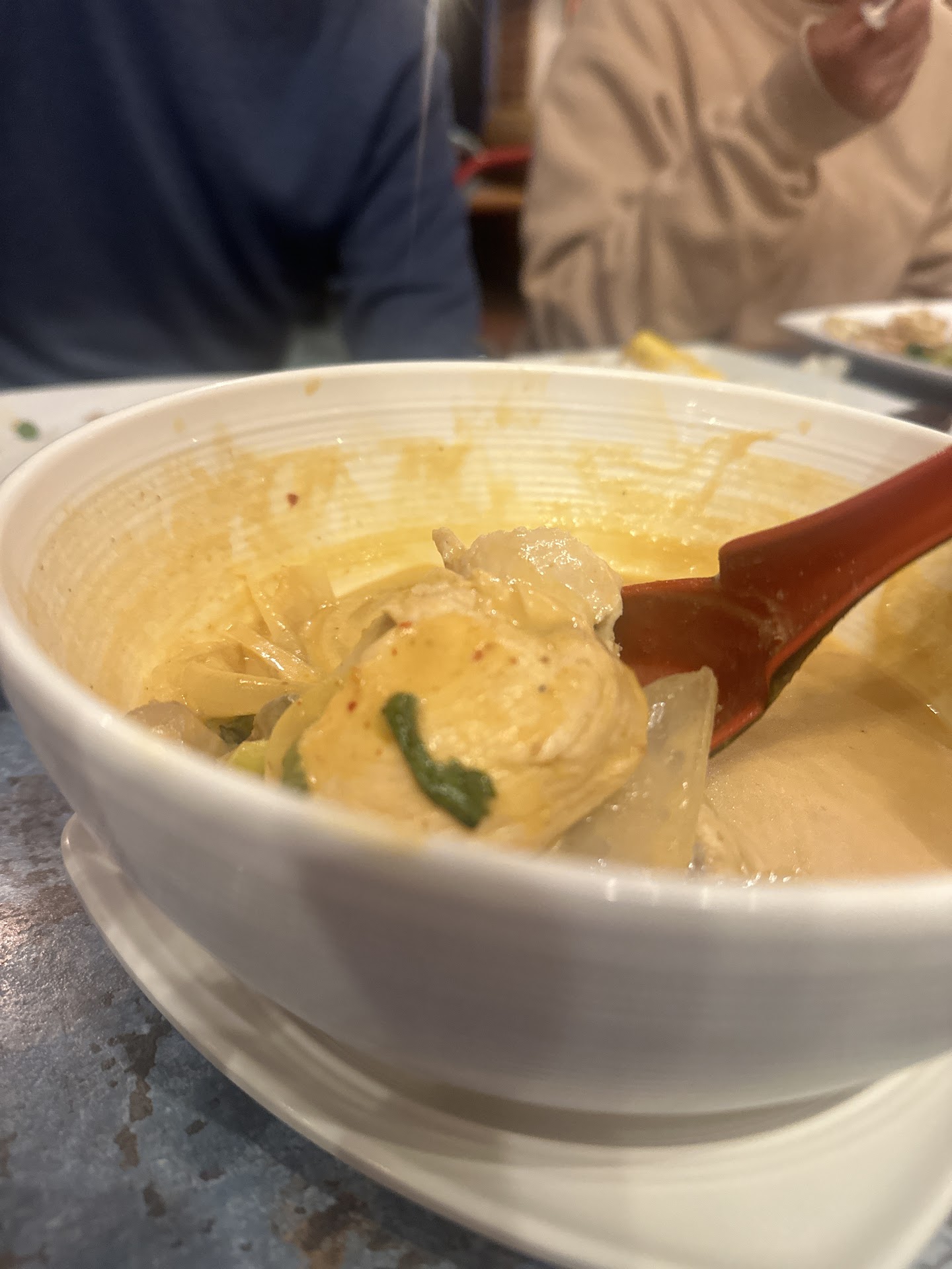 However, the food was fantastic. The tom kah soup had a wonderful depth of flavor from the lemon grass; the spicy glass noodles (I picked level 3 out of 5 on the spiciness scale) were just the right amount of spicy (piquant and just short of making me cry); the pork gyozas were delightful crunchy.