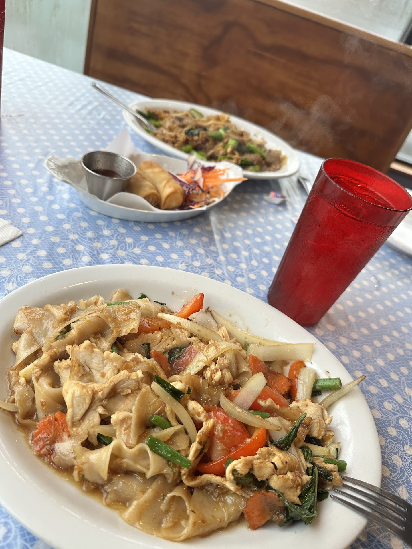 The food? Outstanding! • The Thai basil fried rice had the perfect level of spice and bold flavor — a must-try! • We also had the drunken noodles and pad see ew, both rich in taste and cooked to perfection. • The Thai iced tea was smooth, refreshing, and just sweet enough. • The Tom Yum soup had that perfect tang and spice balance we love.