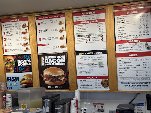 Went to Wendy's drive through for dinner. First complaint is that the order kiosk was sitting directly in front of the menu. So, # 1 we didn't have the chance to look at it before putting in our order. And #2 we couldn't even see it. My husband had to stretch his head and upper body to even see it. The guy who was taking orders was difficult to understand. When we told him that we needed a few more minutes he put someone else on the mic, then came back on when we were ready I ordered the Daves single, as it's been awhile since I've tasted their food. It was ok. Nothing special. My husband ordered the Baconator. Was unlike what the photo showed. There was very little bacon, he could hardly even taste it. They need to be more honest about the photos they show on their menus. The fries were soggy and limp. Didn't taste very good. I had just three of them out of the box. Finally, the frosties have changed from something you needed to eat with a spoon to something you drink with a straw. Disappointingly, it is no...