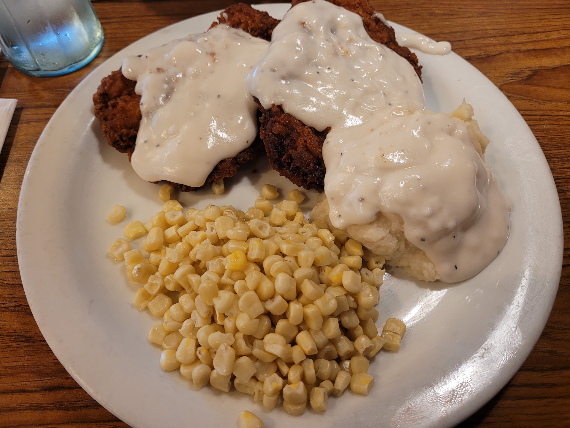 Chicken fried steak looks like it just came out of the box, deep fried it then put gravy on top. My husband order over medium egg and it wasnt over medium. My sirloin steak supposed to be medium rare and it wasnt! It's dry and almost to well done! Mashed potatoes and gravy are cold as well as the broccoli!