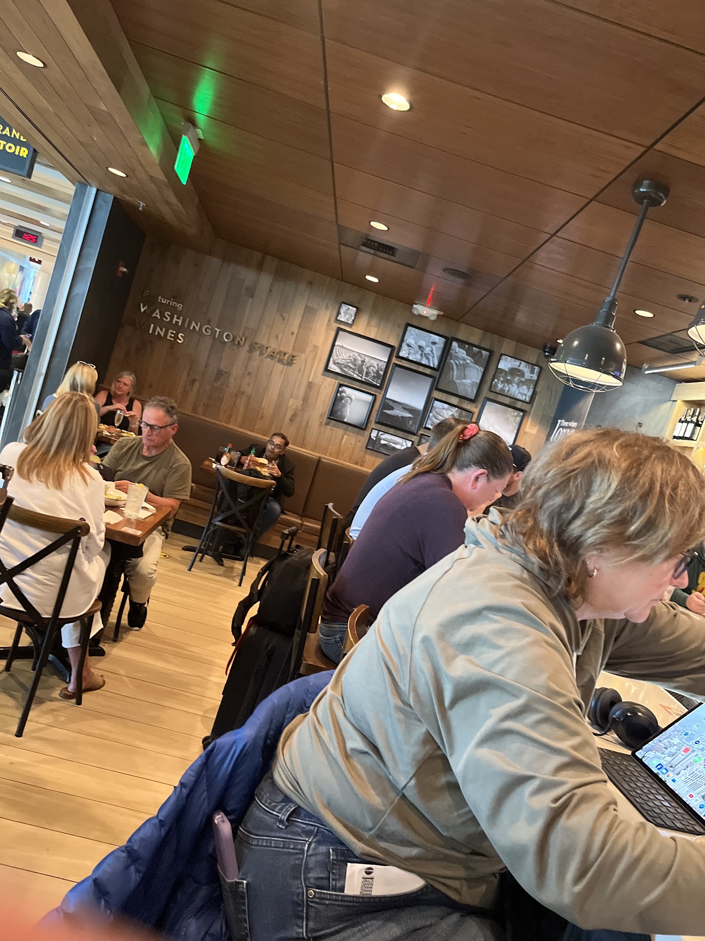 Ā Ā Ā Read moreJust because I ordered a 3rd drink (I got to the airport too early and be there were no lines.... Sue me) the server in front of the entire bar brought me my tab and told me I'm cut off. When I asked why (I was literally sitting at the bar talking to no one and watching videos on my phone with my ear buds... Not exactly disturbing anyone) even the gentleman sitting next to me protested and thought it was bogus. I probably wouldn't have ordered another anyway but do you have to be so rude and so public? I will never be back, even if no other bar is open for booze or food. You have rules per the airport? Fine. But no other bar has ever done this to me at seatac or otherwise. But be polite, more discree. Better? See if I even ask for more. I probably would have asked for water and the bill.