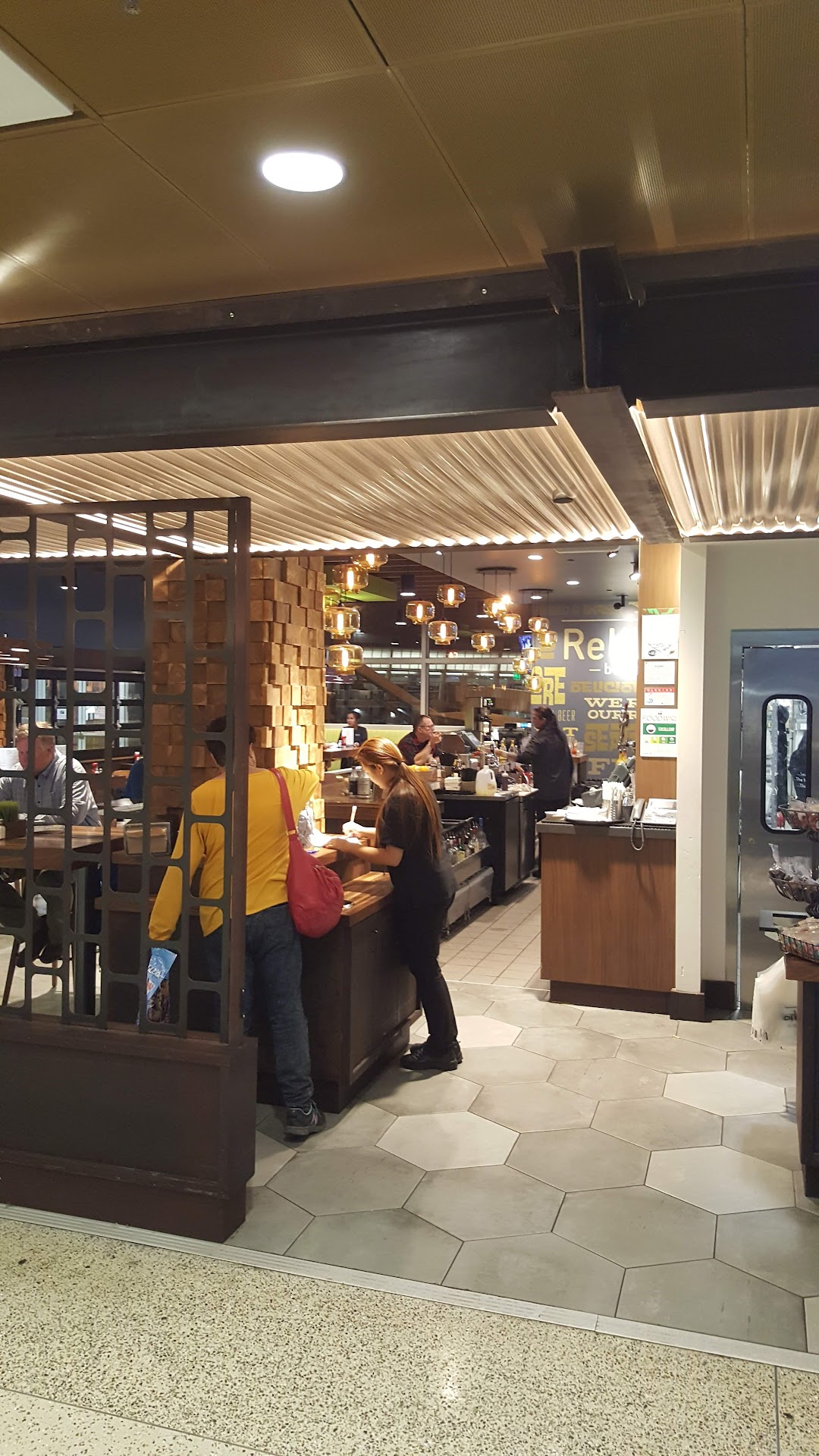 Read moreSat down with my fiancée to get some drinks and dinner when our flight got delayed. We odered a soda but had a question about their menu so we figured it'd be easier to just wait a few minutes when the server showed up (had to order from a web page due to covid which is understandable). What was less understandable was that after 20 minutes we hadn't gotten the soda we ordered, nor had anyone to even come give us an update on that or the other drinks we ordered. The restaurant was at half capacity and most other people had already been served. When we walked over to a server at another table to ask our question about the menu he refused and said he'd send a server over to our table to answer. Several more minutes passed (and due to a local covid guideline we could only be at a table for 45 minutes, which left about 15 minutes left to get and eat our food and drink). At this point we looked back at the web page and found that our cart suddenly had two entrees added to it which we didn't order and had no way to remove. We also had a full view of the bar so we could clearly see no one had even started our drinks. It was at this point we decided to leave and try to get service somewhere else. Personally I'd recommend the bar at Capitol Hill Food Hall. Bit of a walk but much...