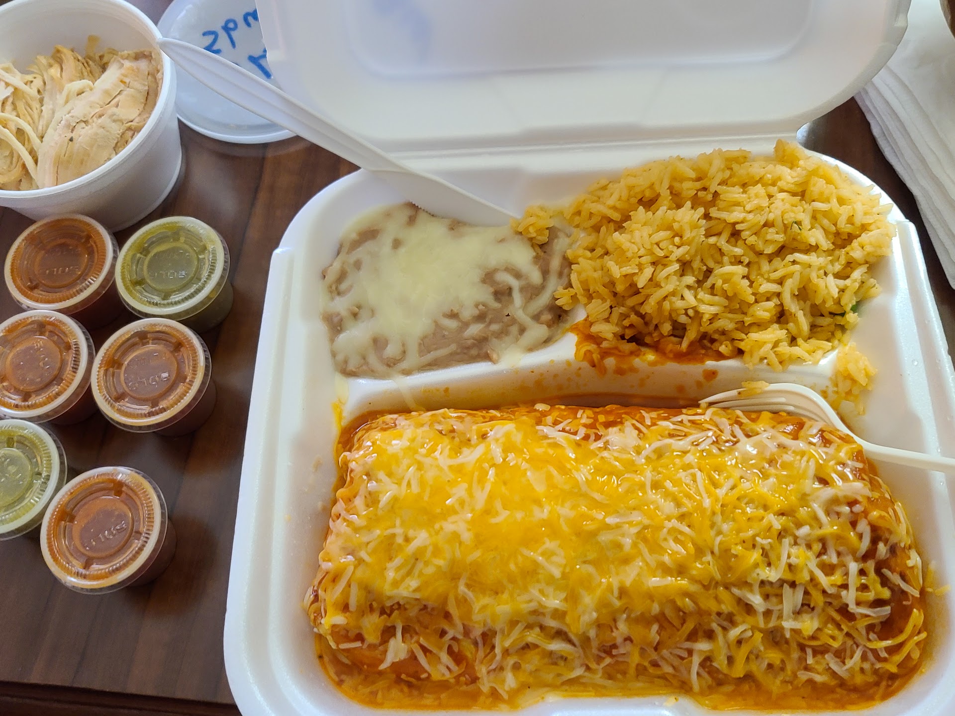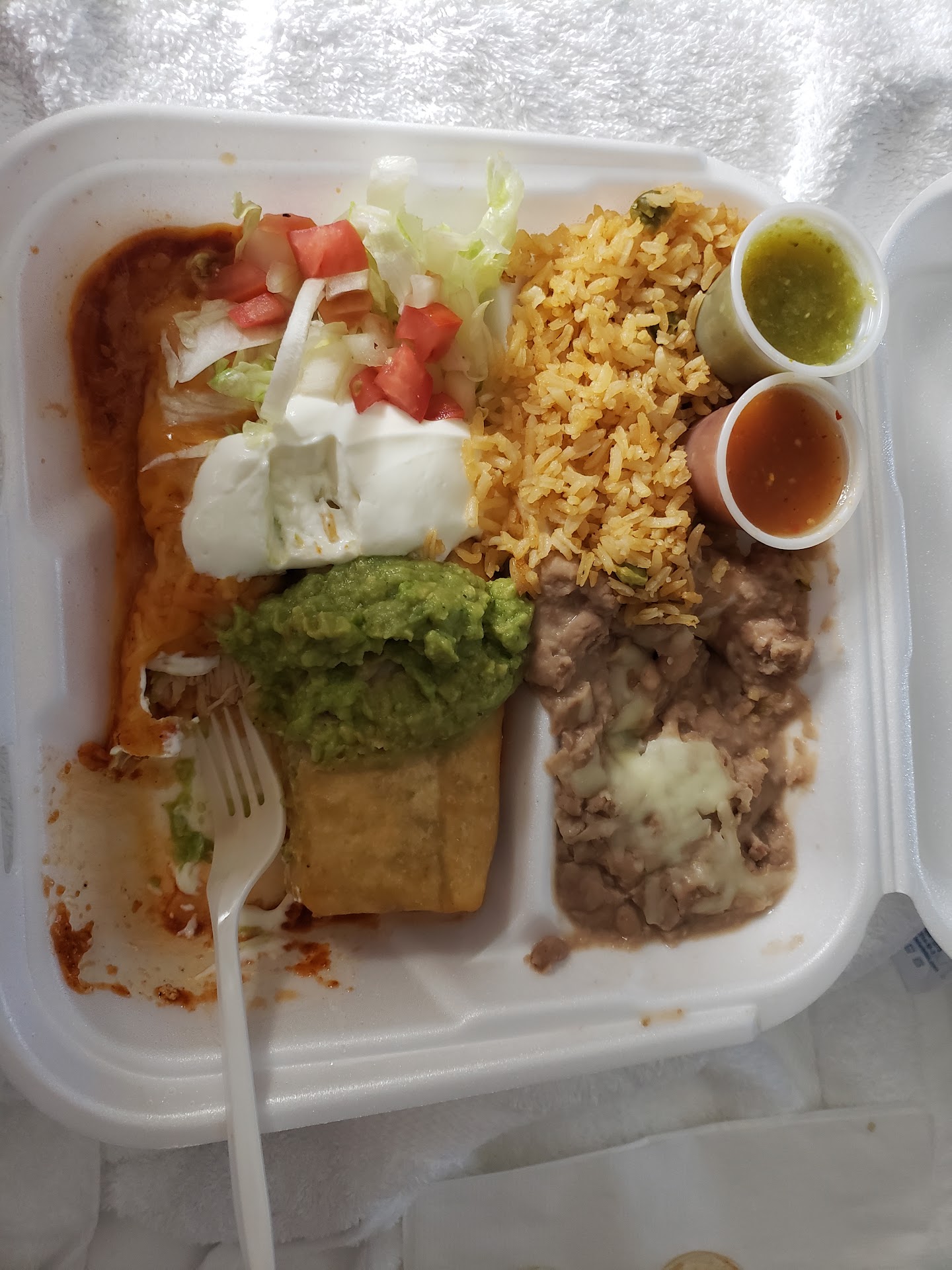 Read moreI needed food right after landing and checking into my hotel. I was hesitant to spend the extra money on delivery in case it wasn't good so I went in. I showed up 5 minutes before closing hoping to get food (and ready to beg haha) and she did not even look annoyed like most others would. She was genuinely happy to help me. She also helped a guy who walked in at closing! Talk about service with a smile :). I got the chicken enchilada and chicken chimichanga combo served with rice and beans and ot came with a generous helping of guac and sour cream with some lettuce/white onion/tomato mix as well. It was excellent and I will for sure eat here again. I would like to see smaller portions for chicken enchiladas, the only I saw was 3 and that is a bit much for me. Maybe I missed on menu though and doesn't affect my rating at all. I love to support small businesses from my original home town and any city I am in. She could have easily turned me and the other guy away after long day. Genuinely nice lady and good food...and did I mention quick? What more can you ask for? To the lady who helped me, thank you so much for the good food and great attitude, even at 9 on a...