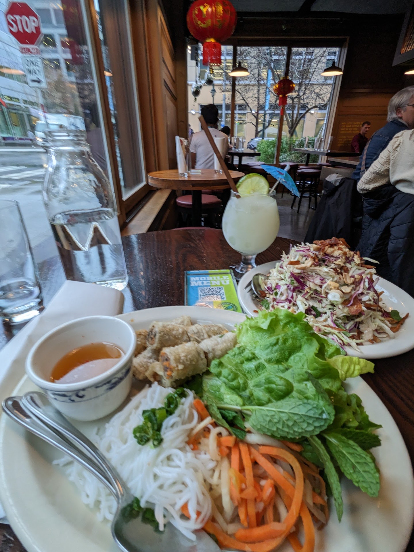 First he sat us and didn't explain the menu was the QR scan version (no problem we found the stashed square to scan). We quickly found what we wanted and waiting 15 minutes for him to come back and take our order. Several times we made eye contact and he never came. It wasn't until he was walking pass did he hear my yell "excuse me, how do we put in an order?".