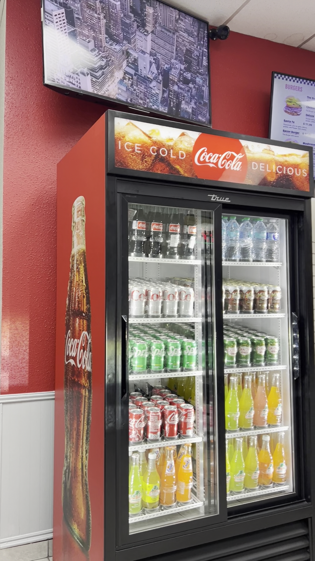 Inside was empty during dinner hour on a Friday but it was clean and has lots of cool event posters that were...