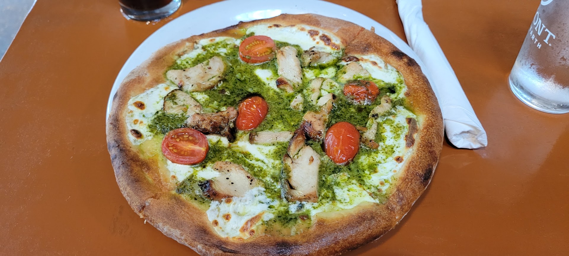Read moreStopped in for lunch and specifically came to this location because we saw they had calzones. They were not very busy on a Sunday afternoon around 2 and we were seated immediately. The person working the bar area was hosting and manning the pizza oven and taking orders…he was working hard. We ordered an appetizer of breadsticks and we split a calzone that had chicken sausage. The breadsticks (two late sticks) were crispy on the outside, but a little too crispy (even for a brick oven) and hard. They were served with a side of marinara sauce that was sweet but no real seasoning with it. We had to ask for some olive oil for the breadsticks as it was missing any seasoning at all. The calzone was pretty large and easily enough for the two of us, we only ate two thirds of it. It had good flavor and contained ricotta and mozzarella cheese. It tasked pretty good but did not have e much chicken sausage in it and again the marinara sauce that was inside it did not really have any seasoning. The location of the restaurant was within a neighborhood and we liked the inside look that contained exposed bricks. The unisex bathroom was not a very clean facility and needs some attention and an upgrade. Overall, this place was solid but could be so much more with an improved bathroom, adding some seasoning to the sauce and maybe undercooking just a bit with the brick over. Crispy is good, but no one likes hard crust. Price was not bad as we spent under $30 to split the calzone, one soda, and the order or...