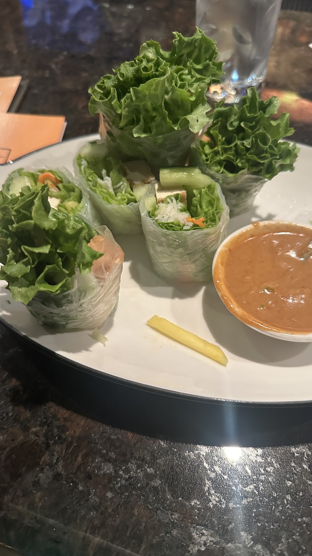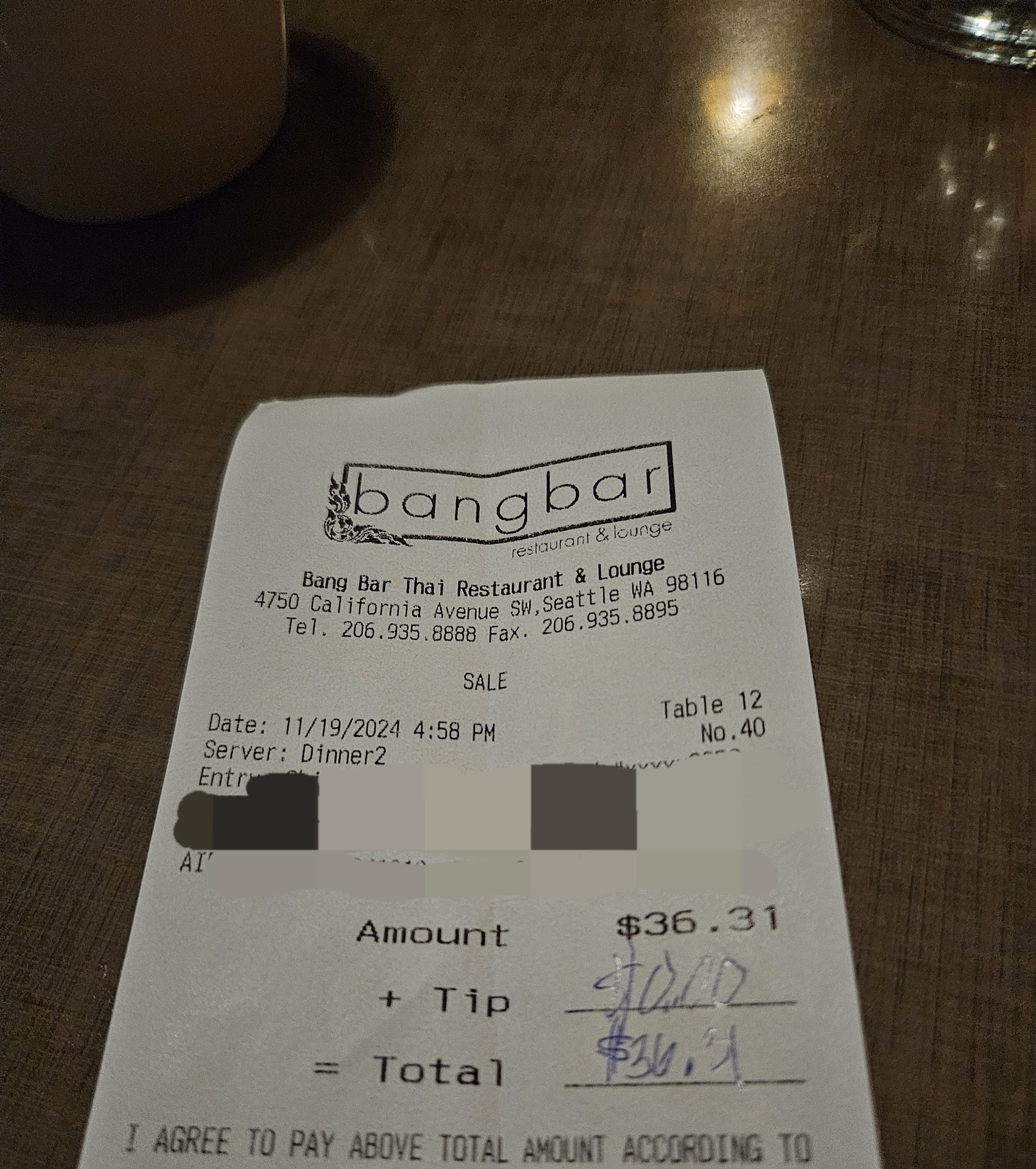 Read moreHadn't been here before, so I decided to give it a try after an appointment. It was really empty for being around dinnertime. I thought maybe it was due to the incoming windstorm and people were heading straight home. I should've too and saved $35+. After my food experience I'm thinking this may be part of the reason for the lack of customers. I ordered hot hibiscus tea, crispy garlic chicken, brown rice and spring rolls. The tea was ok, hot to the extreme but after adding ice to cool down it was ok. I've had better hibicus tea but it was ok for a bagged tea. The rice was dark brown and different from any brown rice I'd had before but was good. The rolls were typically decent. They generally taste the same around the Seattle area so I didn't have expectations one way or the other. The crispy (?) garlic (?) chicken was not good at all. Not crispy. Any garlic that was supposedly in the dish was overshadowed by the salt. The crispy basil tasted like crispy seaweed. I don't like seaweed at all, so this made the experience worse. Visually, it looked good. My daughter was meeting me so I gave the food to her. I'd forgotten she doesn't care for bangbar either but said she'd try the chicken to see how it compares to a good Thai restaurant down the hill. I told her absolutely no comparison. My grandson cooks for a West Seattle restaurant so she planned to ask him if there was anything he could do to fix the saltiness. I haven't heard how that turned out. The restaurant itself is comfortable with just the right lighting. Quiet, but was that due to weather. The service was decent. There were three diners in total so I'd expect it to be. I don't usually give a yes or no recommendation when it comes to restaurants as tastes are so variable. Some can pile on salt, some people prefer not to. I'm just glad I tried this place on a slow night. I would think if you're not hurried to get orders out the quality would be good. Dishes should be consistent busy or slow but if you have more time, in my opinion, it would seem you'd make sure the dish is good. Happy eating wherever you...