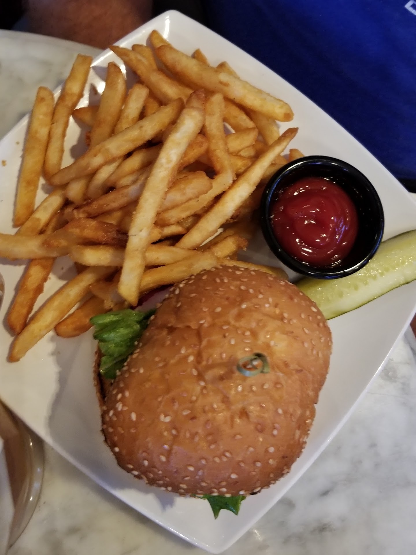 The chicken strips and fries were actually quite good but service folks could not wait to remove our plates of unfinished food. Wow, suddenly, they were capable of coming into the back room! Shocking! I had to guard my food and get my own “to go” box. Since we went past the allotted time for the back room reservation, they wanted us out!. My group was ordering a lot of drinks and would have been happy to do so for a few more hours. I did not see any groups waiting to come in and they did not offer us any tables in the main area.