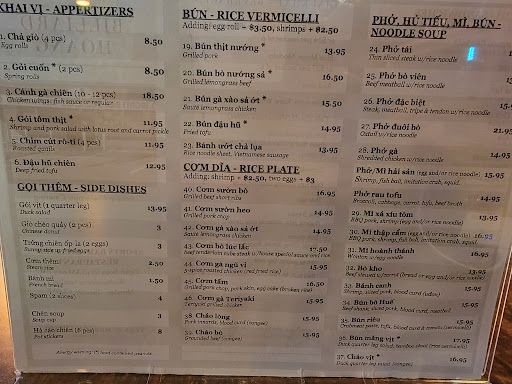 Read moreWe took my brother-in-law (my wife's oldest brother) to lunch for his birthday, and he suggested this place. It was the first time we had been there, but my brother-in-law had been there before - it is located about 4 blocks from his house. The variety of menu choices were representative of the Vietnamese cuisine, rice dishes with or without broth, noodle dishes with or without broth, fried rice (Vietnamese style), Vietnamese bun sandwiches - all served with fresh bean sprouts, onions, basil sprigs, and sliced jalapenos. All similar to what we have had from other Pho