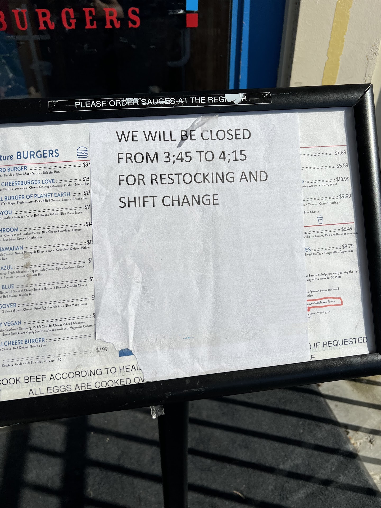 This experience aside, we’ve always enjoyed the OTHER employees and our food here. We’ll come back for the burgers... just hope they get some training in...