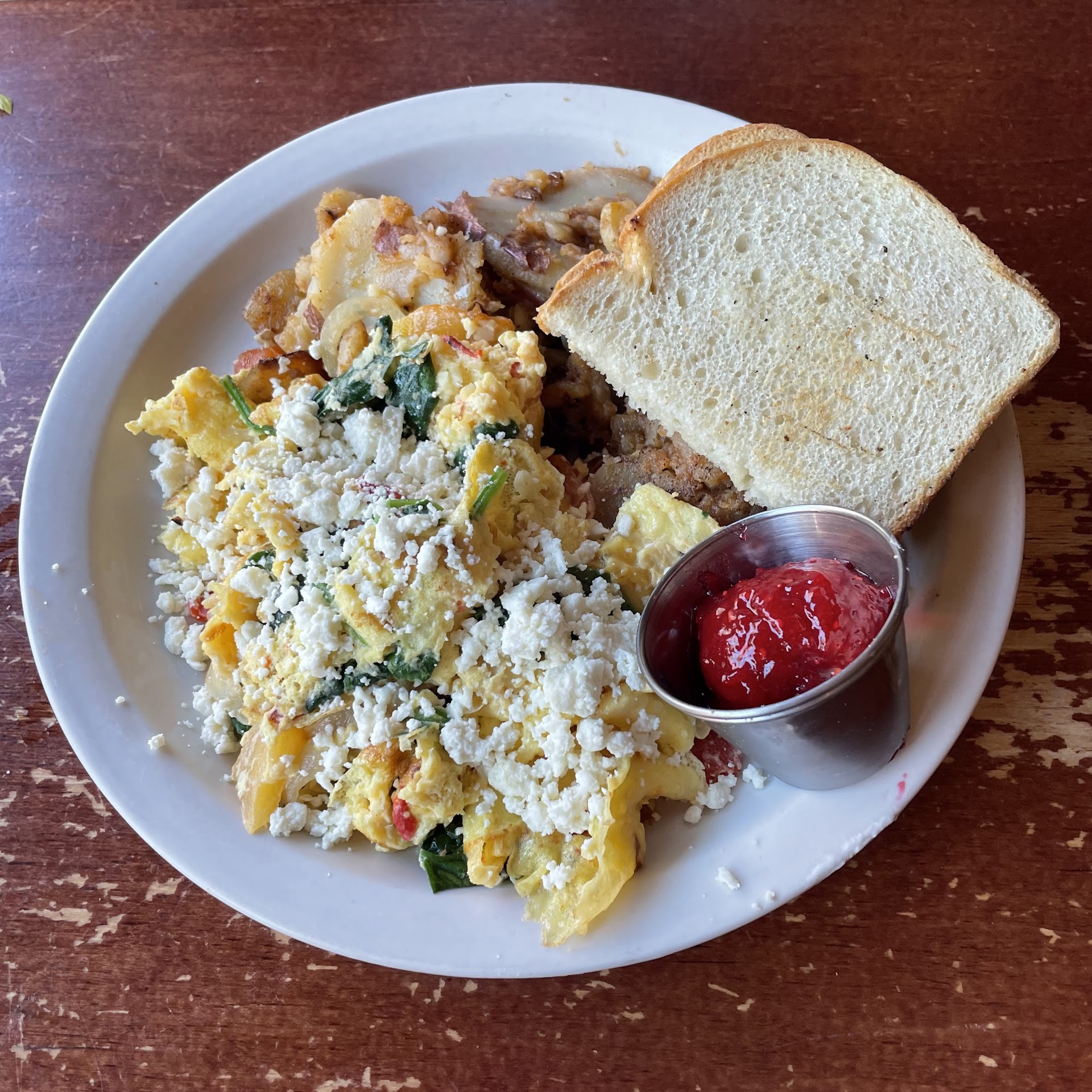 I have enjoyed many breakfasts at Blue Star over the years. But I have noticed differences occurring over the last couple of years--shortcuts, if you will--which have lessened the enjoyment. My favorite meal has been the Norwegian Combo; crepes with eggs & meat of choice. When freshly made, the crepes are tender and very delightful. But, according to a server some time ago, they are now routinely (not just when busy) made up in advance (not sure how far) and then reheated as needed. The reheating method feels like microwaving simply because the texture becomes quite rubbery. But I suppose that could also come from reheating on the flattop as well...overcooking is overcooking. Either way, the crepes are no longer tender and delightful. The bacon used to be quite a supple treat, but now is paperthin and feels like the pre-cooked kind that can be reheated either in the microwave or on the flattop. There is no longer any tooth to this bacon at all. The fact that the entire plate of food, except for the still foamy bacon, was barely room temp tells me there are execution issues in the kitchen. I'm not sure why--we were one of only two occupied tables in the entire restaurant in the middle of the afternoon. Lastly, service was spotty, perhaps due to the kitchen's execution issues. Instead of sitting under a heat lamp, toast was delivered a good 5 minutes ahead of the meal--to just sit and get cold. To the server's credit, it was graciously replaced upon request. Of particular note, some of the above issues do actually predate the pandemic but, sadly, are still around, and others have appeared only recently. Blue Star is an awesome restaurant, and I very much want to keep it on my go-to list, but its quality and execution issues would...