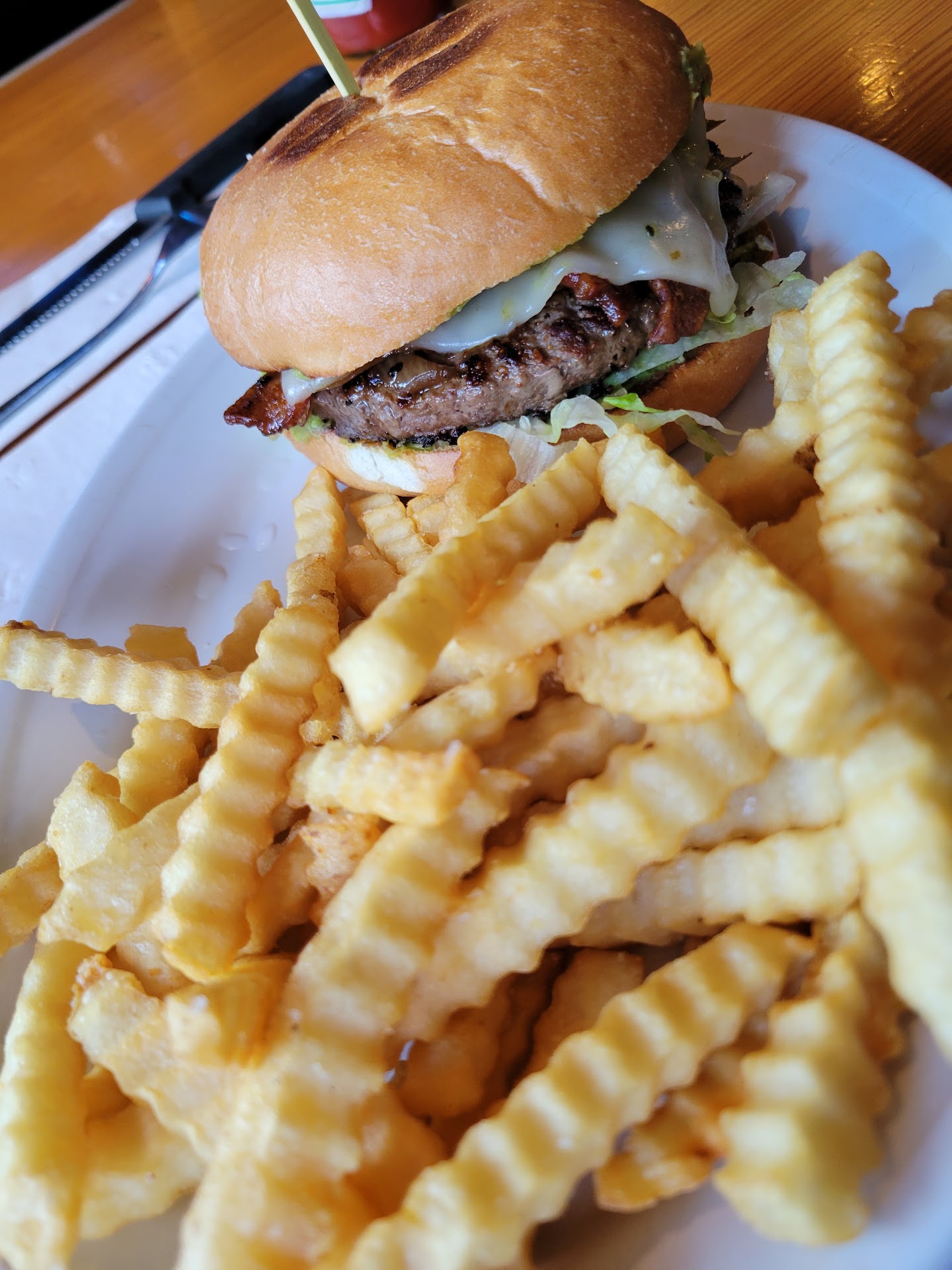 $8.75 26oz mugs of local craft beer? Sign me up! The $18 brisket sandwich was good but dry (no bbq sauce) and came with just a small amount of crinkle fries and a decent portion of slaw. Lots of space inside and on the covered patio (including fire circle). Pool table inside in the back. They've got a pretty good tap list of mostly local beers and a fine menu of burgers, chicken sandwiches, wings, fries, etc. A fine local pub. Nothing special, but does...