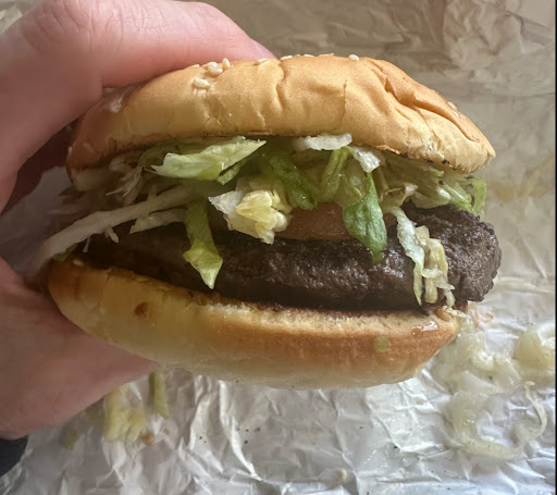 I stopped by after night practice as they were one of the few spots still open. Was a bit overwhelmed by the many choices and wanted more protein so opted for a triple deluxe burger. Snagged onion rings as well since why not. The triple deluxe is essentially three patties and three cheese, literally what you expect. Tasted like most other burgers, so no complaints there. All burgers come with lettuce, tomato, onions, ketchup, and mayo alongside their differences. Burger is somewhere around $7 or $8, didn't see a price listed and don't remember exactly. It's one of the more expensive burgers which makes sense as it is 3 patties, the others range from $5 to $6 so that's fairly cheap.