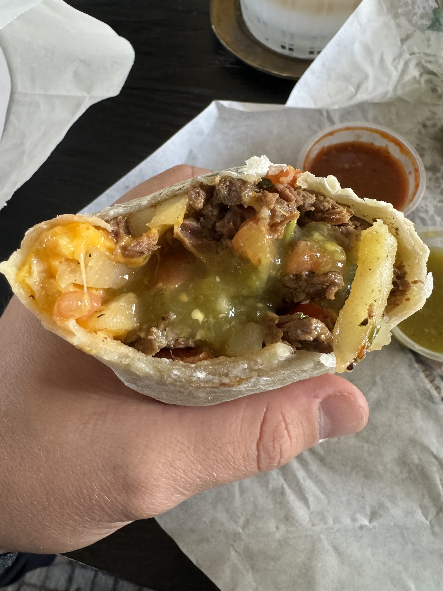 I was very impressed with the menu prices, until I tried the food. Nothing in my carne asada burrito tasted fresh. I’ve been to these about-to-fail Mexican food places, where the steak feels like it was cooked the day before and reheated a day later, shredded and rancid. The steak supposed to be tender but has to have a body. They did not spread the ingredients evenly. So I ate them in order rather, first crumbled rancid steak then lettuce. I was at least glad the salsa didn’t have bubbles and wasn’t gone bad, but lacked on creativity, but their pickled carrots were good. The place doesn’t feel inviting (like those typical hole-in-the-wall taquerias), more like a wharehouse with tables spread apart like 10 feet, like in pandemic times. The music was blasting out loud at 11:00 am only to have a song skip over and over until I realized the phone they play the music with, was being used to watch social media videos. I was very annoyed by that, so I finished half of my poor quality burrito and left with no plans to...