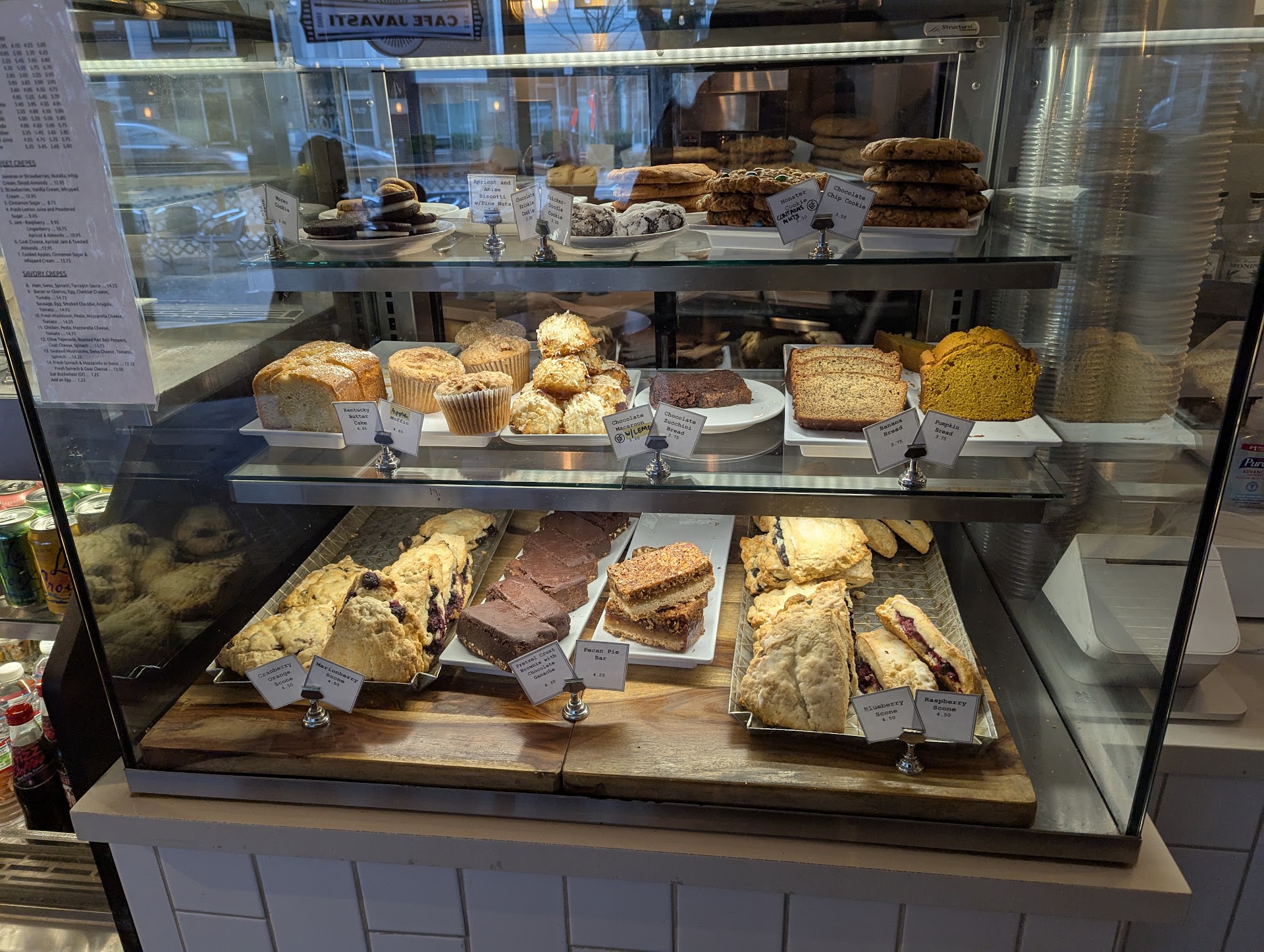 I will say that I did experience a bit of a mix up once where my crepe order seemed to get lost during a rush. What was estimated to be a 15 minute wait wound up being closer to 45 minutes, but, to their credit, when I asked for an update on the order they sincerely apologized for the mix up and even offered to refill my 20oz iced latte I had ordered on the house for the delay. The girl who had initially taken my order apologized multiple times for the error and I did really appreciate the free drink as well. I've found that the staff here are, in general, quite nice and pleasant to talk with when they aren't too busy and they did a great job of doing their best to make good on an honest mistake.