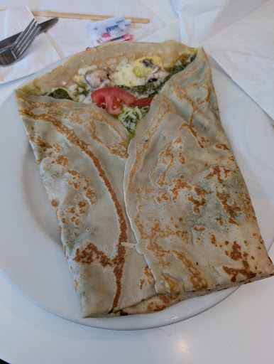 First off, it's in a great location. Pretty easy to park if you need to drive over, but also in a great spot if you're close enough to take a walk. The cafe itself has always been very welcoming and clean when I've visited, even during really busy stretches when you'd expect things could get a little messy. The coffee is consistently great and I love the variety of crepes they have on offer. I've really enjoyed the sweet crepes I've tried and the one savory crepe I've ordered was tasty, although the crepe itself was a little thick compared to the sweet ones I'd had (unsure if this is normal with the savory options or if it was just a one off).