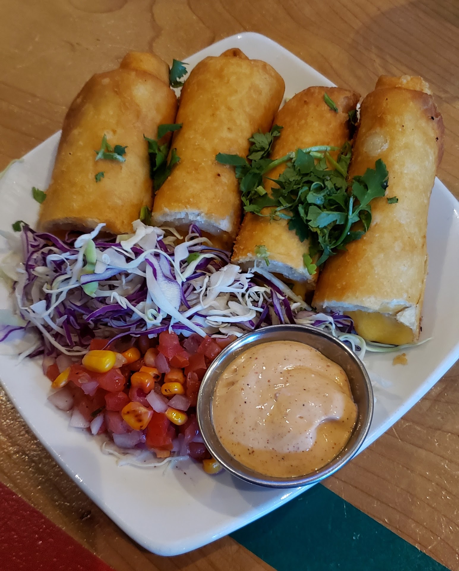 My sons, one had a chicken burrito and the other had quesabirrias. Kids were enjoying it but then again 17 year olds eat a flip flop if hungry enough. I also took a bite and noticed that both had same style of beef. What I mean is cubbed up asada. Quesabirria should not be cubed, meat should be slow braised beef. The dipping broth for the quesabirria was lacking the right flavors.