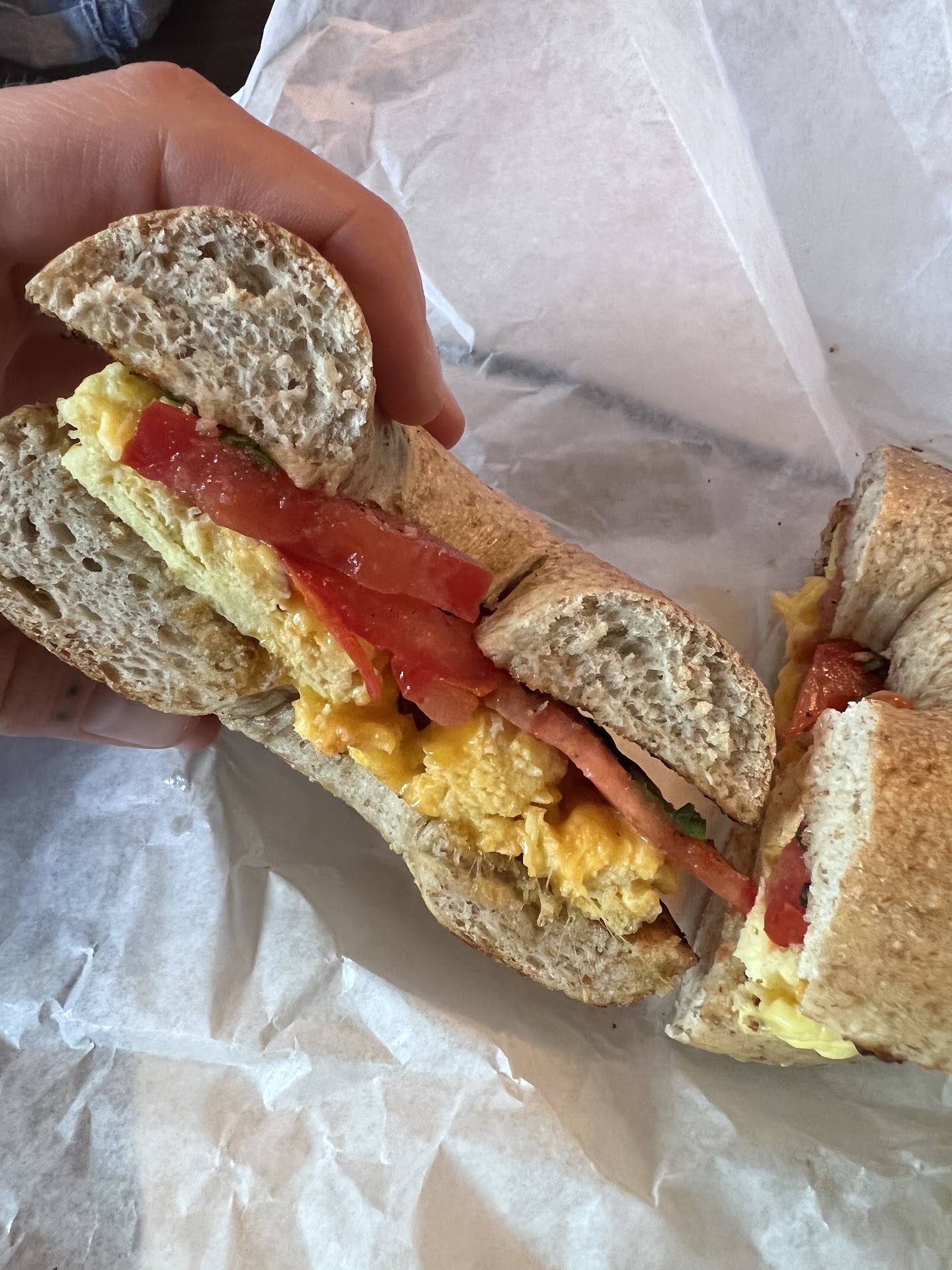 I got a cheesy tomato basil egg sandwich and the fresh basil was delicious. I also got a rice bowl for later to eat at lunch since I wouldn’t be able to get out, I ate it cold since I didn’t have a microwave to use and it was yummy. Had eggplant, rice, and what looks like some kind of lentil (or maybe barley?) mixed in with the rice. Enjoyed the food overall, though I would say a bit pricey for what it is, but I would still recommend.