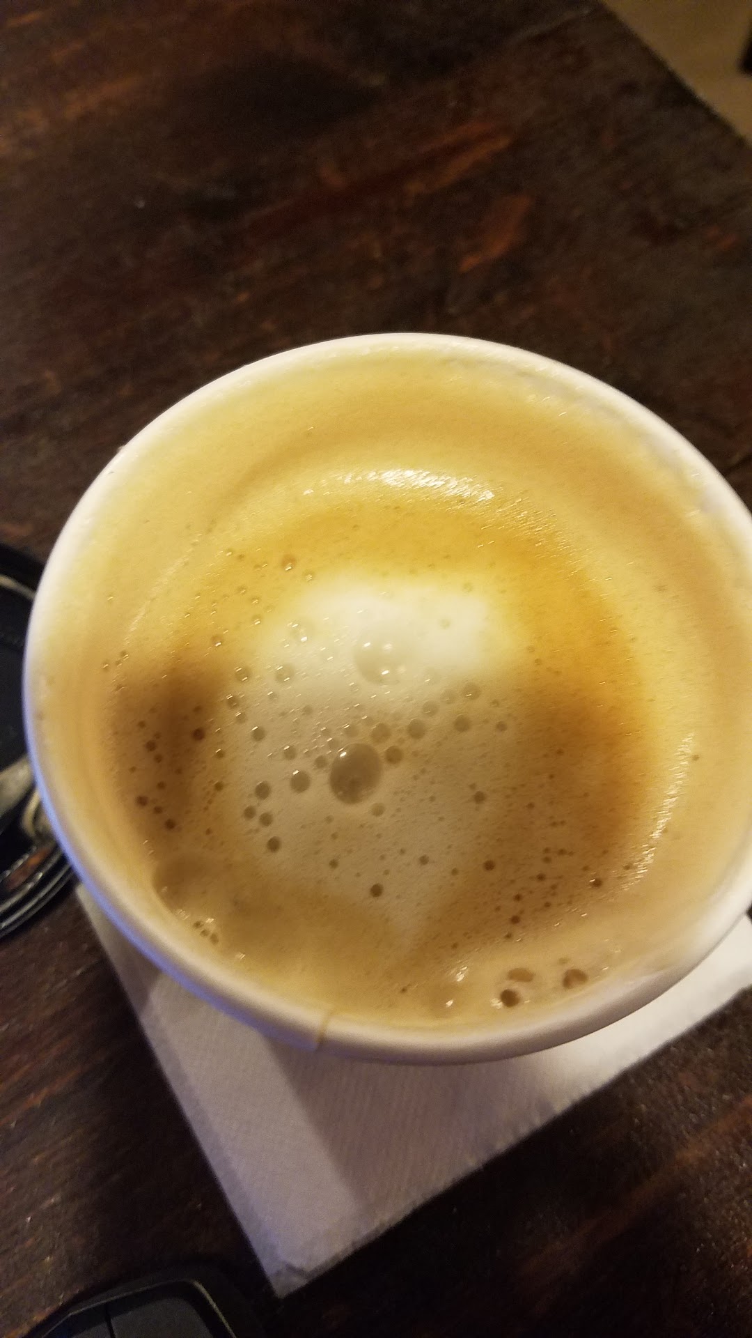 The place itself is ok. A. Its dingy and dark which is fine and seemingly appropriate for a cozy Seattle coffee shop. Maybe a touch on the dirty side, especially if you sit upstairs and look down at the dust on the shelves etc.