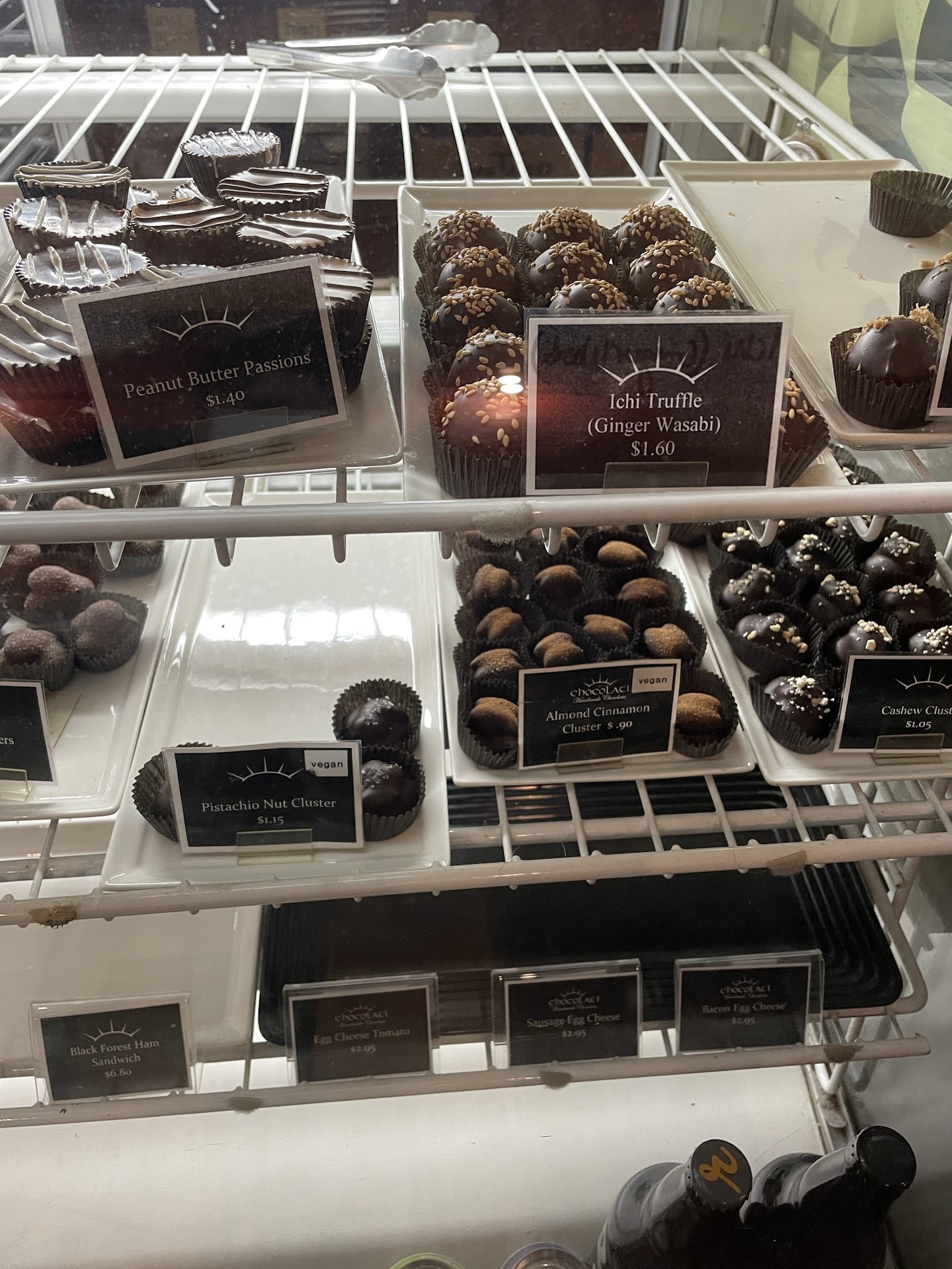 Read moreA chocolate cafe?! Absolute heaven for me. My sister and I both got the Europa hot chocolate on our last visit, one with soy and one with hemp milk. Europa hot chocolate is essentially sipping chocolate - far more rich than regular hot chocolate and highly recommended for chocoholics! They have espresso drinks as well but it was evening and we didn't need the caffeine. Their truffles and chocolate goodies are very good. They sell a small assortment of baked goods from All About Cookies - the vegan chocolate chip pecan cookie was amazing! The gentleman helping us out was super nice. He was the only one working so there was a small line but nobody minded - gave us time to browse all the goodies before ordering! This is also a perfect place to pick out a chocolate gift for the chocoholic in your life. Or even work from - plenty of seating and free wifi. I'll definitely be back when visiting...