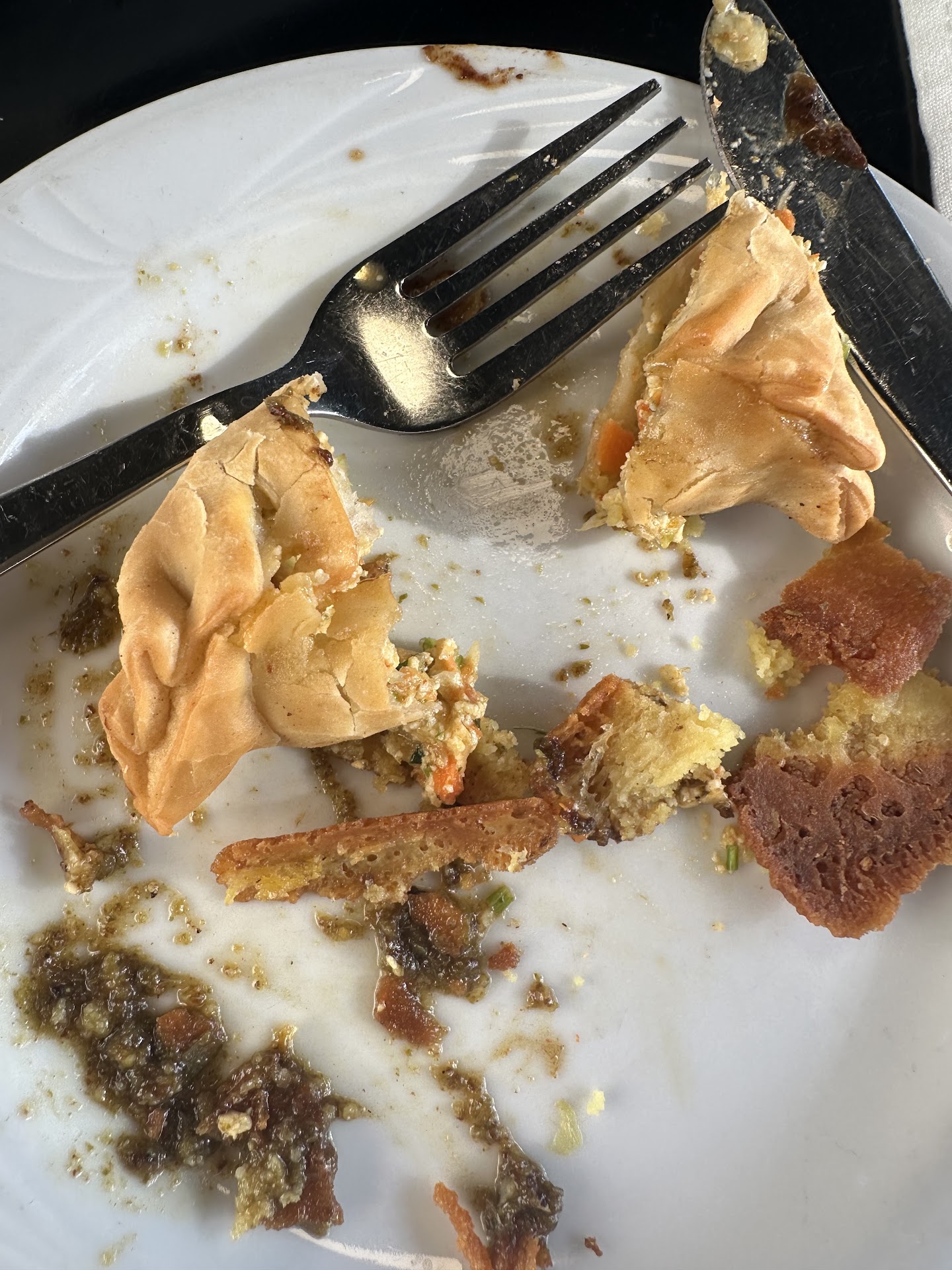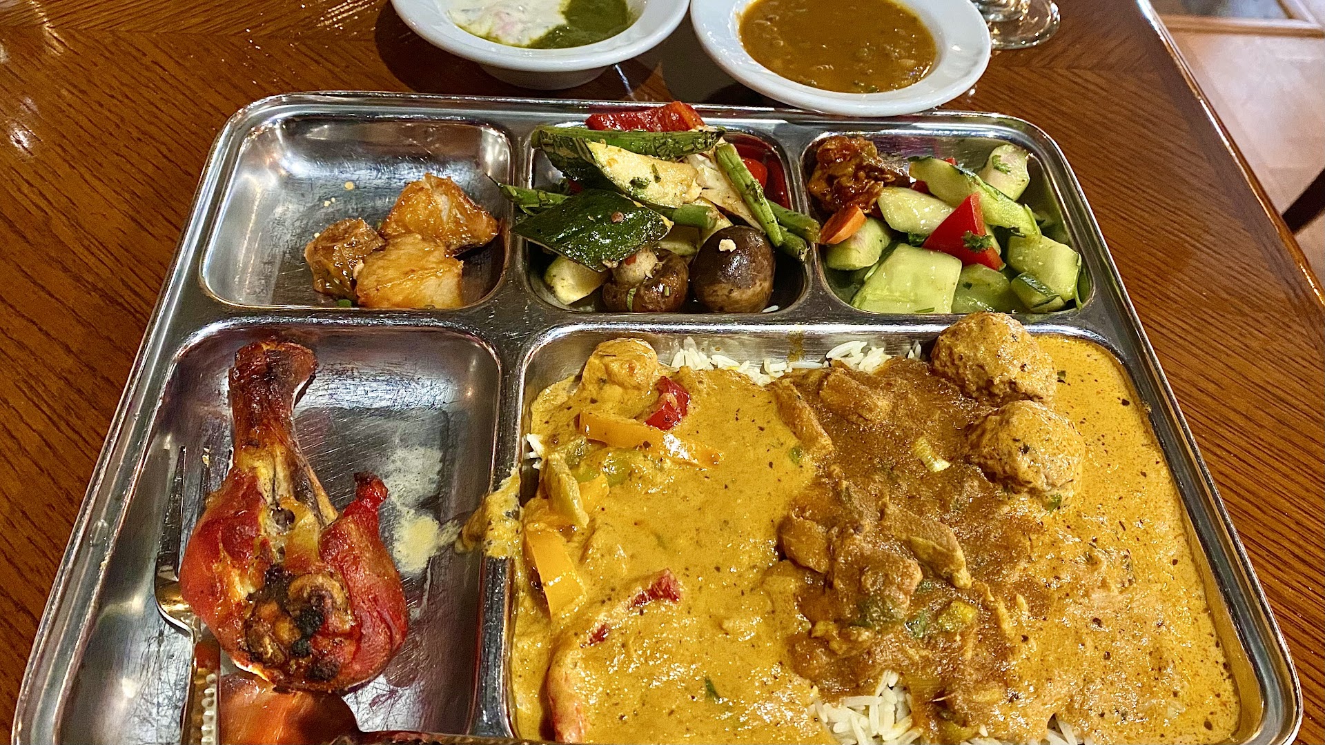 The Daal lentil was surprisingly tasty. For buffet, they offered four types of curries including a meatball tikka masala, a vegetarian korma and a soupy kind, which was very flavorful as well. Indian roasted vegetables, Tandoori chicken legs, and different kinds of chutneys are long term staples. Cheesy fried potato is very tasty but filling. Pre-pandemic they offered individual bite size cakes as desserts. Now they offer three different kinds of desserts, including rice pudding, mango mousse, and Gulab Jamun, which is a kind of deep fried cheese ball. The first two desserts are super yummy, the last one is...