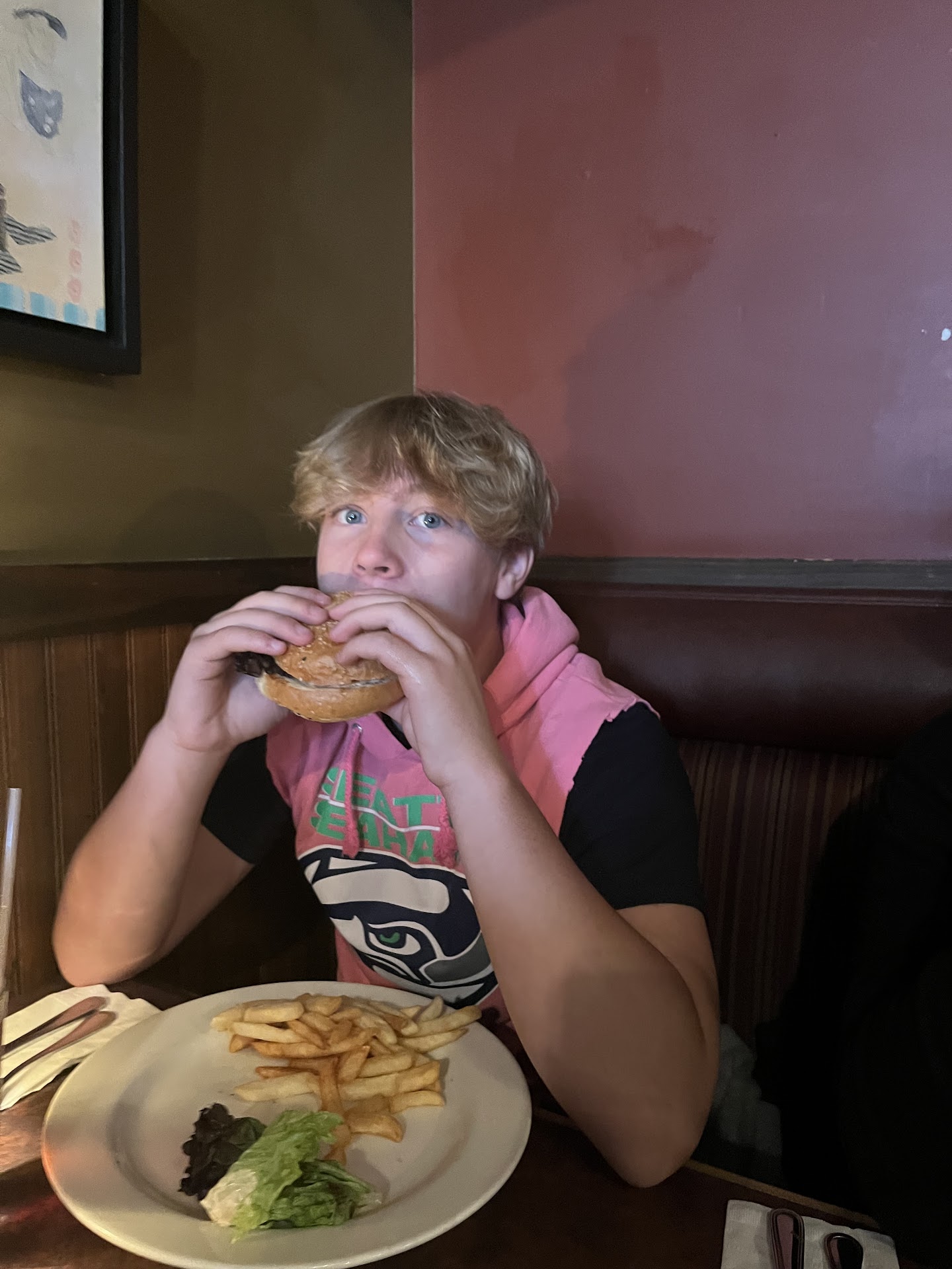 Read moreWe chose to eat as Collin’s Pub randomly. It was on our way to our first NFL game ever. We walked in, grabbed our menus and seated ourselves as it was posted to do so. Truly thought, with how busy the place was, that everything was going to take forever. This was not the case at all. We were immediately approached by our server, Benny. He got our drinks ASAP and suggested a great beer on tap for my brother and my daughter. Shortly after, he was back taking our order. My brother and nephew ordered the burger, I ordered the pulled pork sandwich, and my daughter ordered the falafel sandwich. Everything was great. And, it came out of the kitchen very quickly. Hot, flavorful and delicious! Benny was there in a hot second if he noticed drinks needing refilling and to make sure we were taken care of. He was an awesome server. And, we were approached by, who we believe to be the owner, twice. Very nice and friendly. Spoke with him about the game we were going to and racing for a short moment. Was nice to have him approach us and see that he cares about his place and his customers. Seemed like a good, down to earth guy. The atmosphere was great also. Felt very comfortable there. Sorry for the book. But I will return when I get...