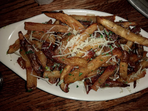 But as to food recommendations, it's a little tricky because every time I think I've found something worth jumping up and down about, the menu changes, sometimes removing things without notice. For instance, I would've said that their happy hour fried chicken sandwich was one of the best deals in town at 11 dollars. A truly incredible, even life-changing sandwich with the biggest fried chicken patty you ever saw. When my loved ones and I would come back from martial arts, we'd celebrate with that sandwich. But, alas, it's gone.