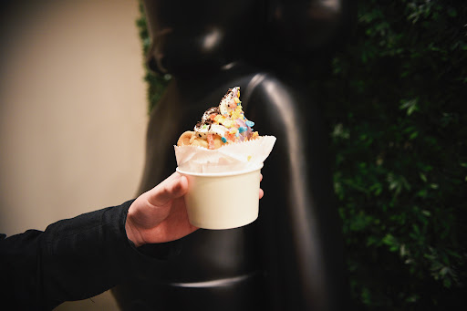 Now, everything about the inside is my type of place, like it is all me. The inside is pretty modern, and then you have all the streetwear and hypebeast decorations. My favorite piece is definitely the huge KAWS statue (again, which they took down) because it really stands out and is a really cool statement piece. Also, I love the music choice, because the whole time while you're waiting for the drinks, you are just vibing, and enjoying all the decor.