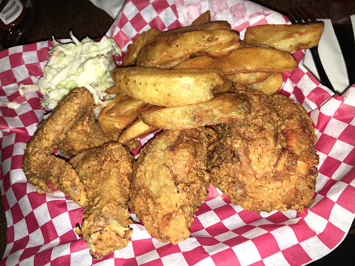 When you walk in, the place reminds of a old country bar believe it or not. The decor isn't nice but honestly it did not bother me at all. There are a couple TVs there along with skeeball so there are things to do when you get in. They have quite a few beers on tap, along with an assortment of hard alcohol that you will be able to see when you first approach the bar. The REAL reason why I come in here is the fried chicken. The fried chicken is some of the best in city and I would much rather go here then Ezell's. The fried chicken portions are huge! aaannd of course very crispy on the outside and tender on in the inside. The chicken also comes with a side of jojo's and coleslaw, also very good!