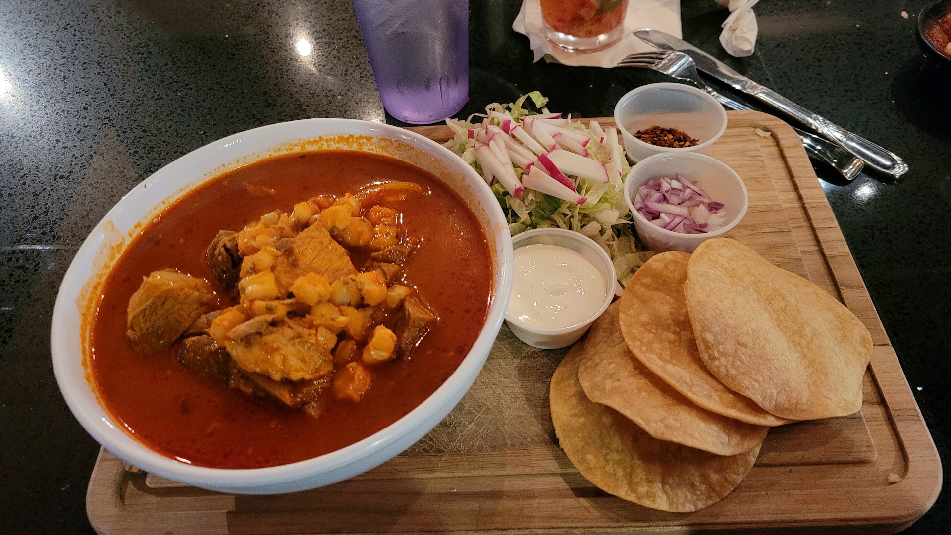 My husband and I found this place randomly, once we decided on what to have for dinner. Admittedly, I lived in Arizona for 18 years and never had Pozole. The Bartender helped with advice automatically, after noticing I was hesitating (and not knowing where to start). The food was all really great, service was perfect, and we loved all the unique choices and funny dish names! I noticed they never bugged us about another drink (I didn't want one) or more chips, which was a refreshing change from an americanized Mexican/Latino restaurant. Everyone was definitely working as a team, and I was able to re-appreciate the authenticity of everything, from how they all communicated in Spanish, to the (possibly manager?)'s delightfully thick accent. He was extremely knowledgeable about food, and also told us about the menu specials, hence my Pozole. The churros were FRESH BAKED, absolutely perfect for the hankerin I've been having for them. Definitely...