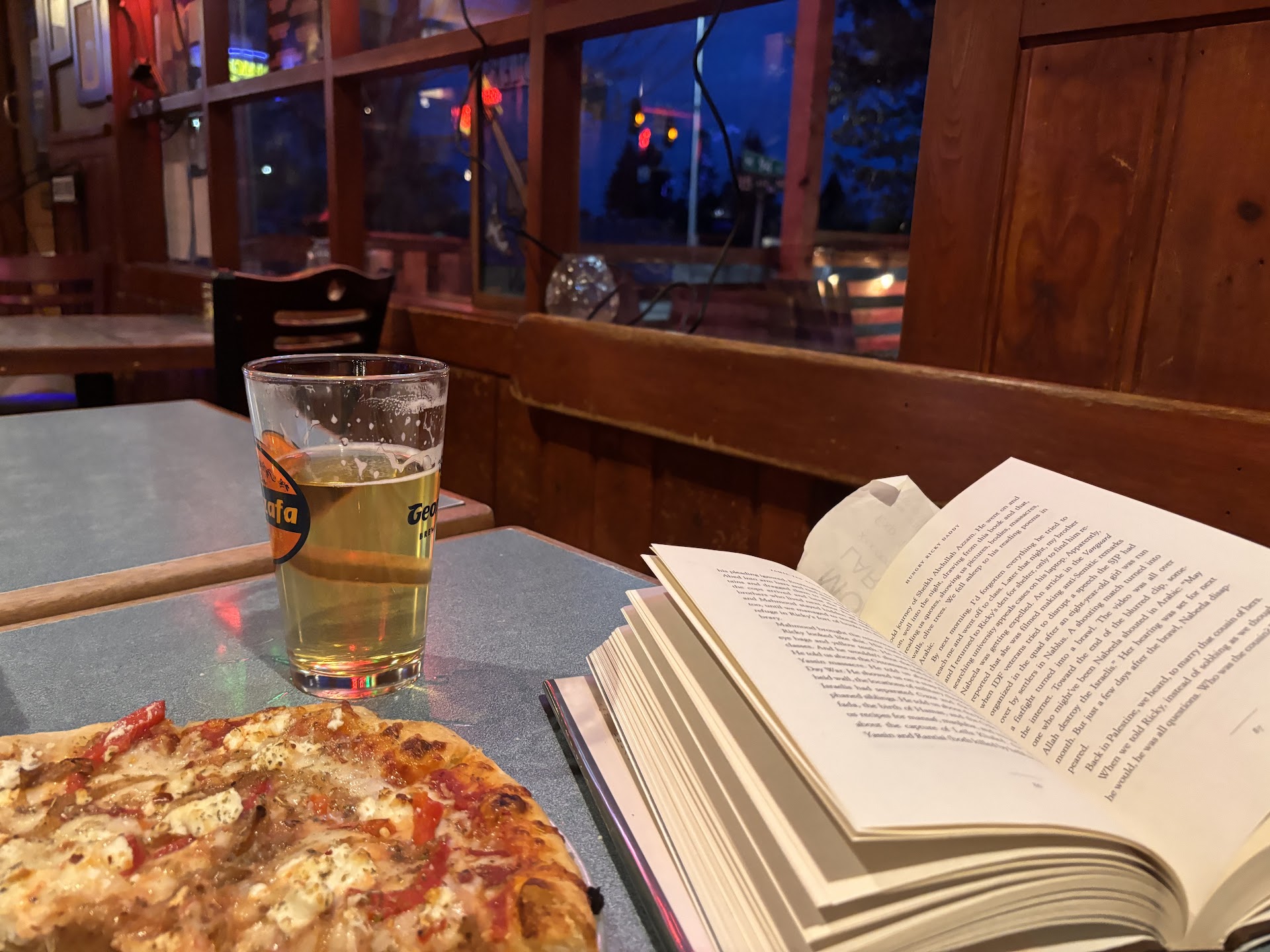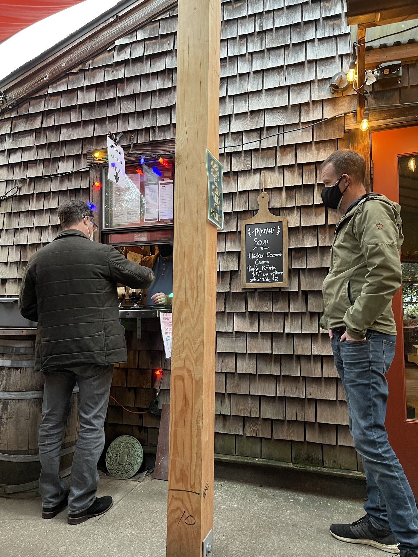 I'm going to start off that when we arrived it was packed the only place to sit was out on the patio with heat. So that was nice. Ordering your drinks and food was kinda confusing at 1st. But once they explained it it was simple. You order and they open a tab which makes it nice I think so u don't have to keep ordering and paying for drinks every time u order.