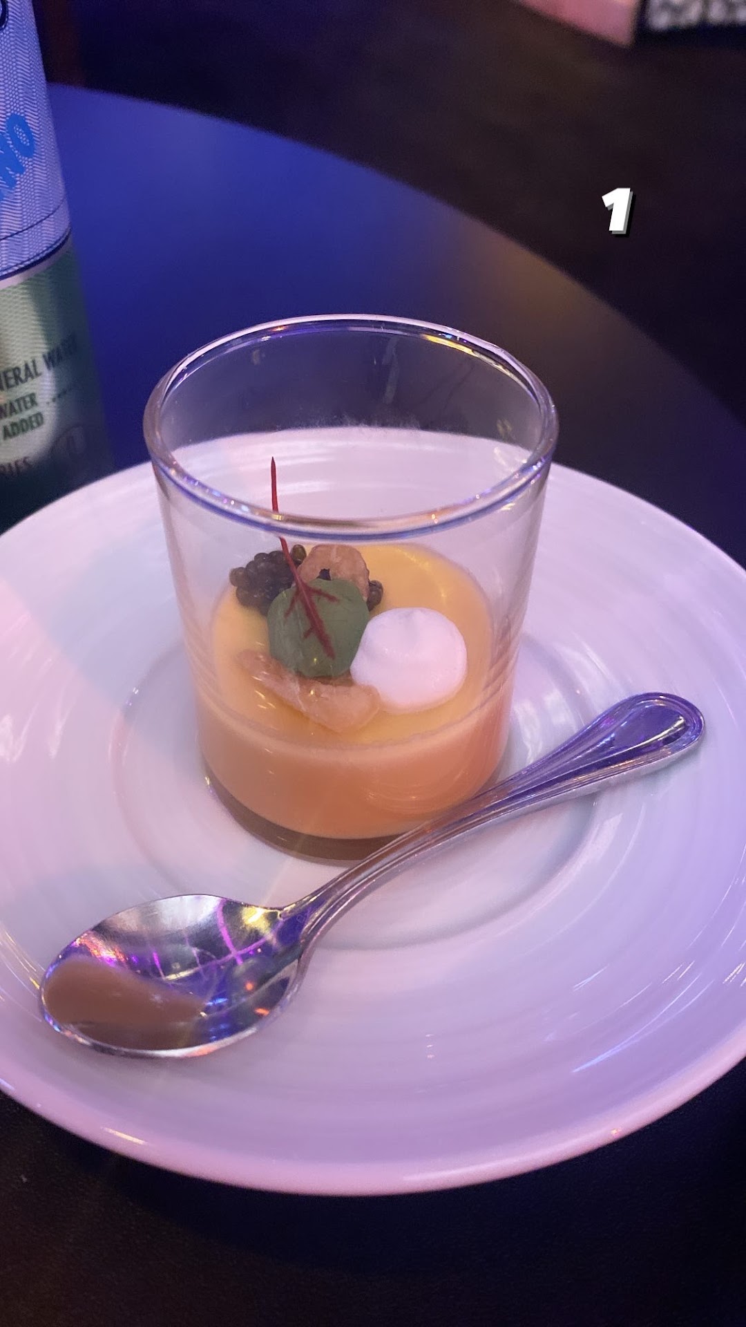 Lastly... Fourth Course: Pandan Buttermilk Panna Cotta And Burnt Butter Polvoron By this time I was just really annoyed and was at the very least awaiting to be saved by Panna cotta. My partner got the Panna cotta and I got a rice pudding thing with no flavor again, my partner shared his dessert with me and it was good but not because it was good but because my mouth was looking for anything that could give me some kind of saving grace.