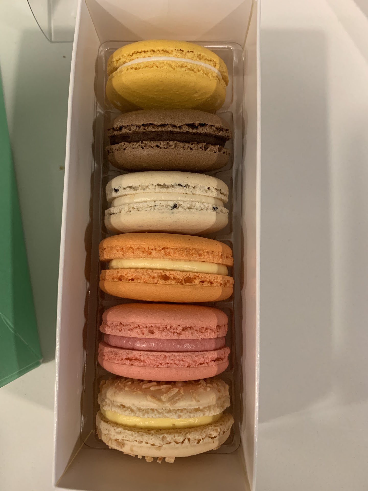 MACAROONS: one of the best I have tasted. Not too sweet or artificial. The passion fruit is my favorite.