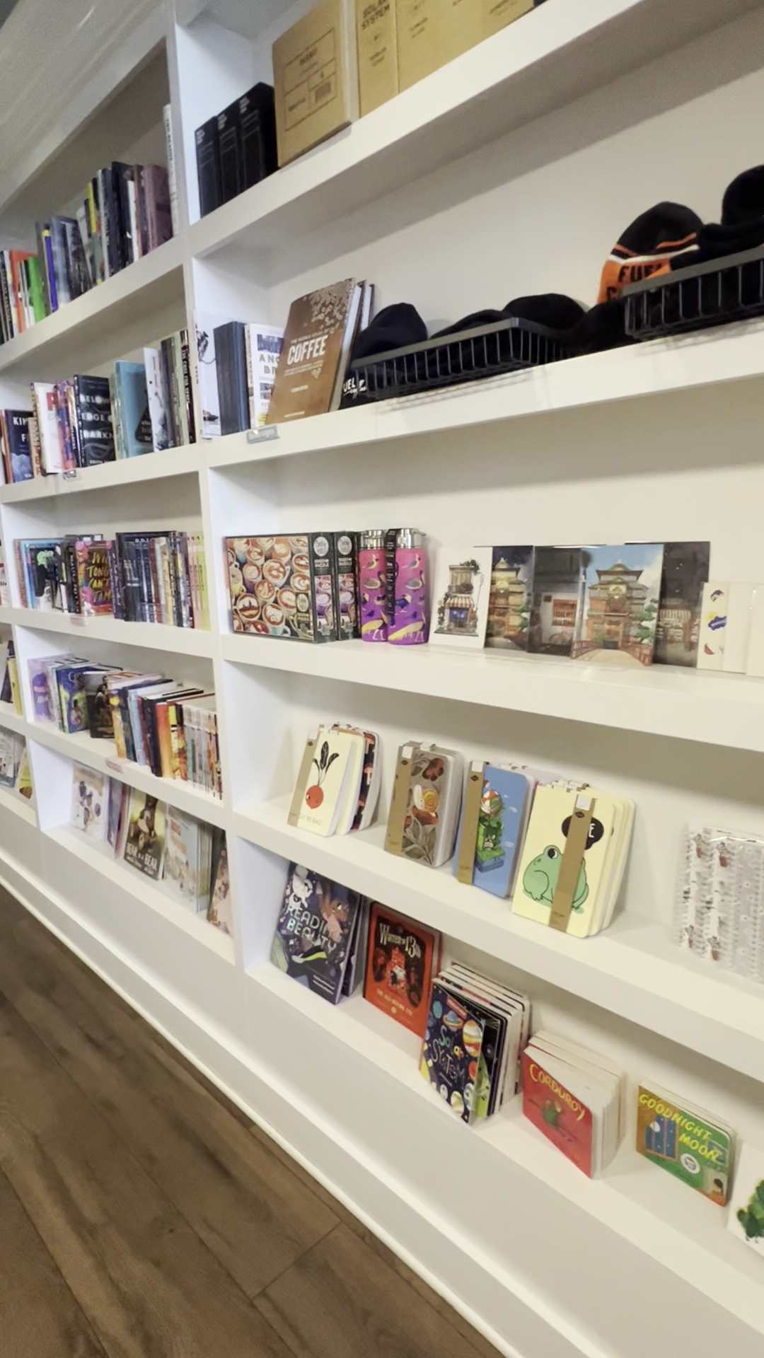 Atmos: Great! There are 3 standard tables up front + window seating, and in the back past the book cases is a giant L couch + 4 standard tables + 1 large group table (seats 8ish). The lighting is nice and warm colored in the back. Music does play, alternative, almost too loud in the back but I think I can still focus for work.