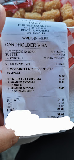 Honestly we paid $27+ for 2 small sides and 2 small shakes it's a bit much considering the flavor was off and portion super small. But shakes were good. We tipped 15%. So spent $31.02 for really just enjoying the shakes and tots.