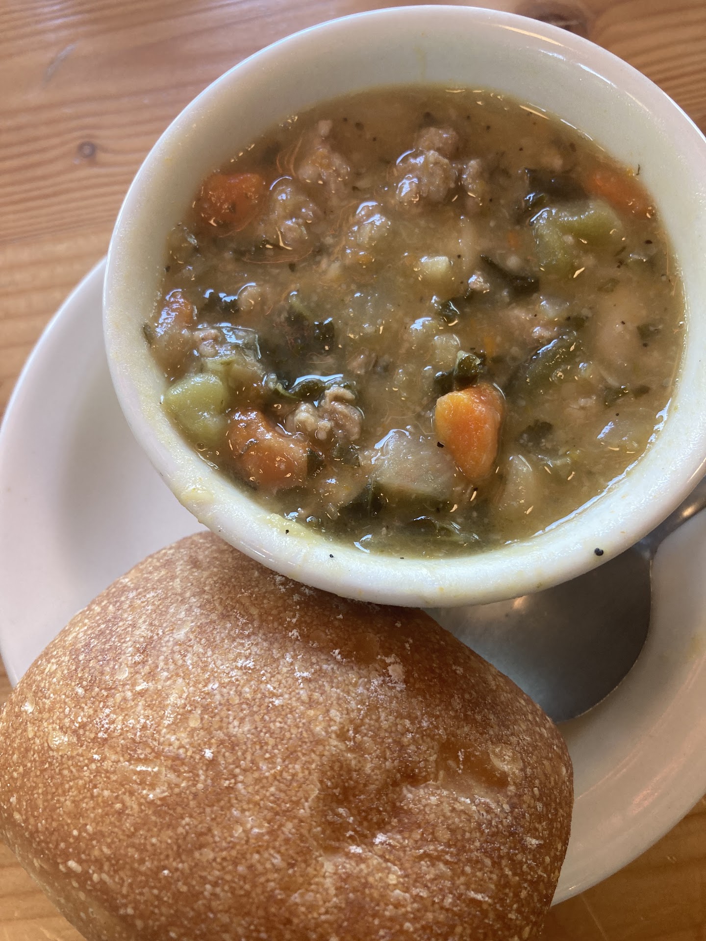 The current biggest issue is the line and the lack of it's management. On a more packed day, if there is a mixture of folks ordering baked goods and folks ordering just coffee and/or sandwiches, these two groups tend to split as the line reaches the bakery counter. This seems to cause confusion for both customers and the counter staff. On a slow day, if we are browsing the bakery case, just taking our time, people will cue up behind us and we have to wave them on or encourage staff to help them first. A few suggestions - 1) have a 'take a number' system, so folks can browse the bakery case and have their selection in mind when it's their turn 2) have someone at the counter guiding the line, asking people to step forward, aside, towards the counter, etc (us Wallingfordians are a leisurely, entitled bunch and tend to need more formal guidance). 3) move something around, either the rope that designates the line or the bakery case.