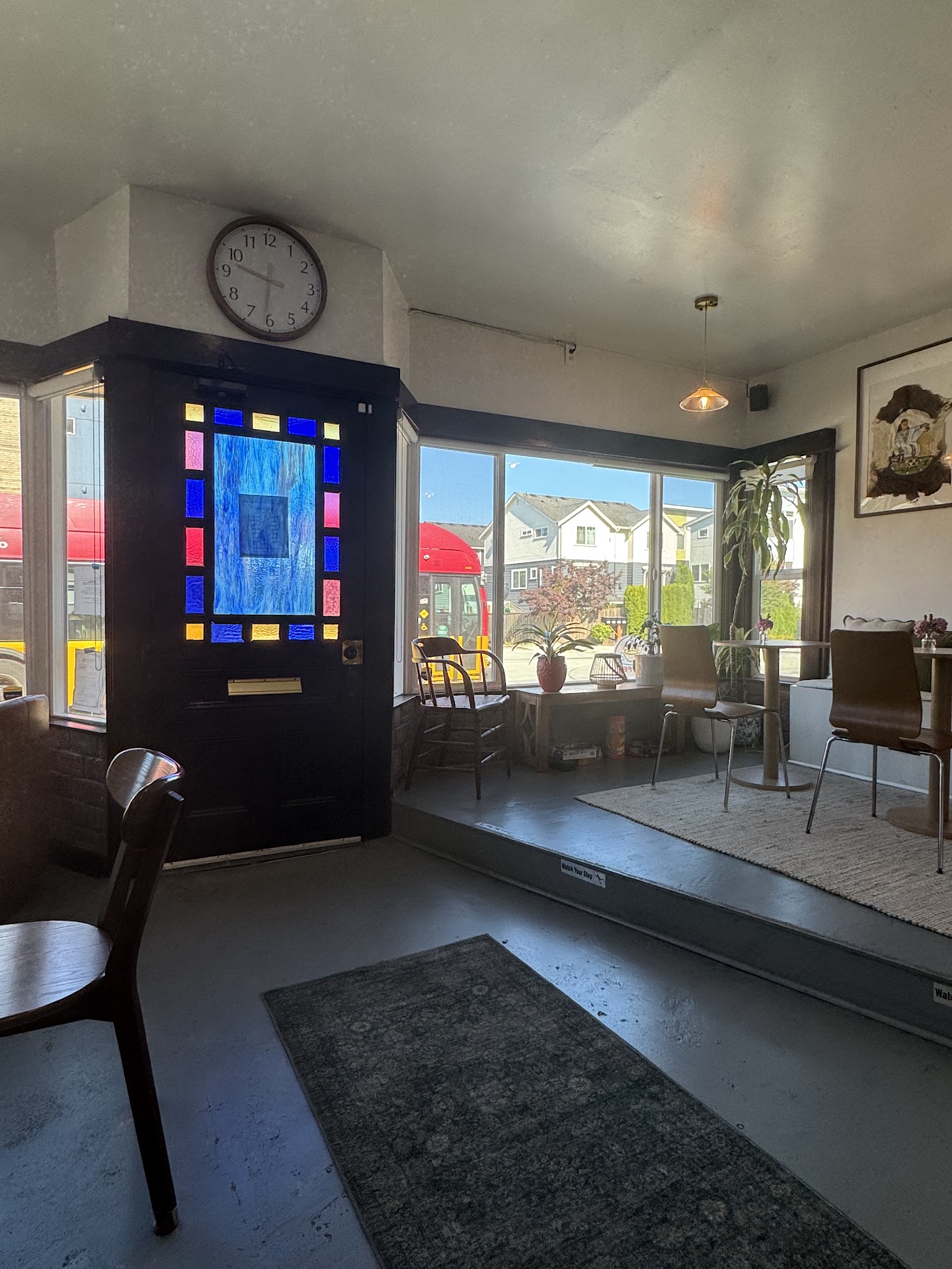 I was ecstatic to learn a small-biz café was opening within walking distance from my house, and even happier to find out that the shop fits my cozy criteria. The space is warm, inviting, and homey with beautiful Eritrean artwork and stained glass from the original build.