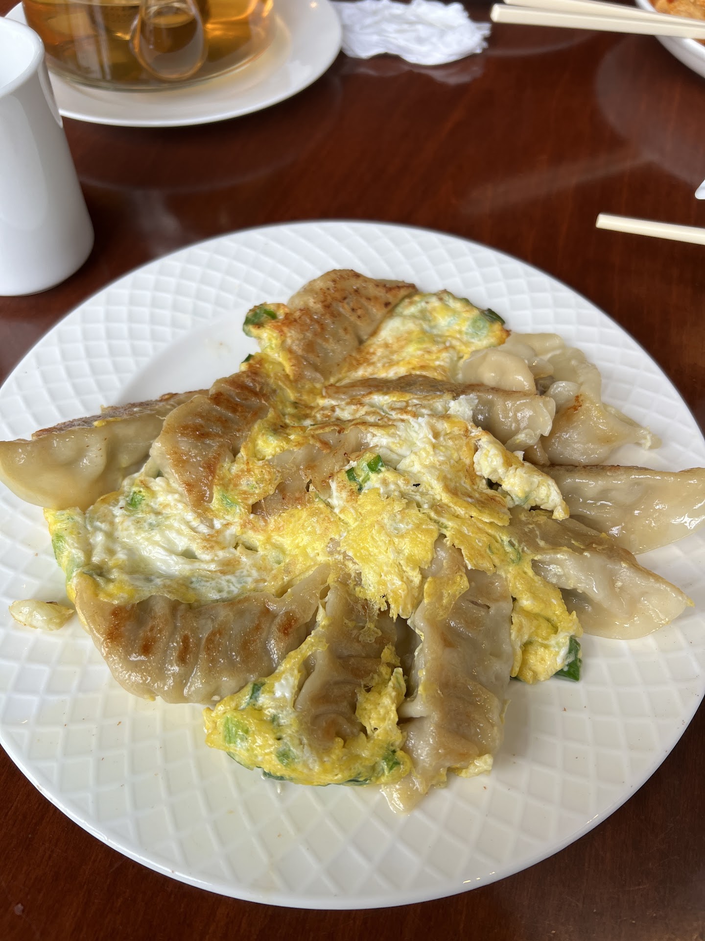 in addition to the dumplings being amazing, the egg omelette was also super soft, as well as being thick it was blended in with these greens which added just that extra flavor these managed to combine so well with the dumplings and the surrounding to create a beautiful flavor combination