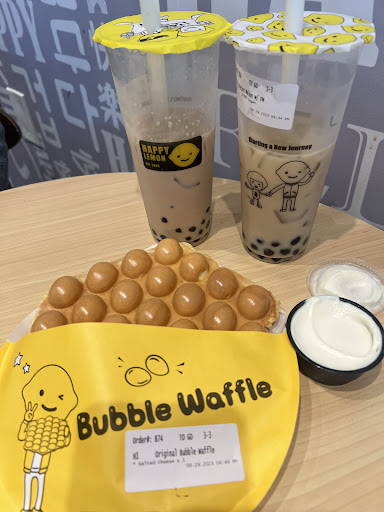 Read moreLong-time boba tea drinker here and I have only just discovered the bubble waffle! My wife and I were at University Village and feeling peckish from running errands. Dinner time was still a few hours away and we wanted a quick bite. The Happy Lemon caught our eye and we were intrigued by the bubble waffle, which seemed to suggest a different taste sensation than regular waffles. We ordered the original bubble waffle and two boba drinks. The waffle was really good, with a crispy shell and soft interior, and much lighter than a regular waffle since itâs bubble-shaped and hollow inside. It came with a sweet creamy dipping sauce, which complemented it very nicely. The boba drinks were very good as well. We were very pleased to discover the Happy Lemon and will definitely be back. And I will try the memo...