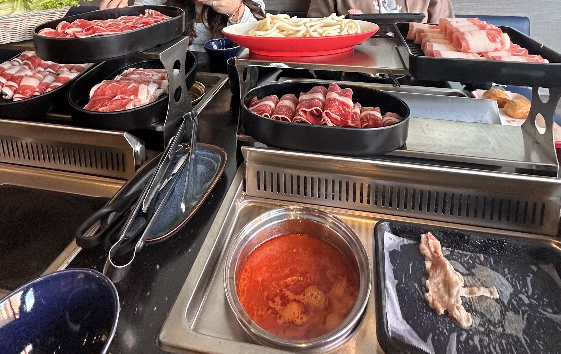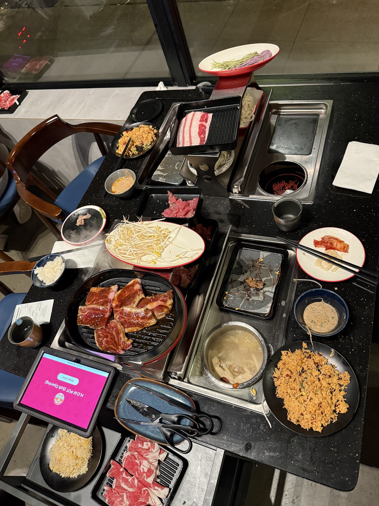Read moreUpdate! Overall Rating: 5/5. We came back a 2nd time and had good diners around us. We are already planning our 3rd visit! We were excited to learn this was a combo KBBQ and Hot Pot experience. So we had to go! Price points definitely worth it, about 40 per person for all you can eat for 90 minutes. And boy they bring food out quick, you order everything from a tablet and can just keep ordering. We tried all the meat and seafood options, all were tasty, the sauce bar was fun good choices for mixing your own sauce. They also have self serve drinks, dessert, and rice / braised pork! We left very full. After 5pm they have free parking across the street so that's a plus for downtown Seattle. Our only cons were: the food tables are close together. We unfortunately got sat next to 4 college girls and could hear all their conversations the entire meal, so that's a bit of a downside, but it gave us time to focus on our food. I wouldn't recommend this as an intimate dining experience, but if you just wanna eat till you roll out of there this is the spot! The owner was very nice and gave us a coupon for our next visit. We will...